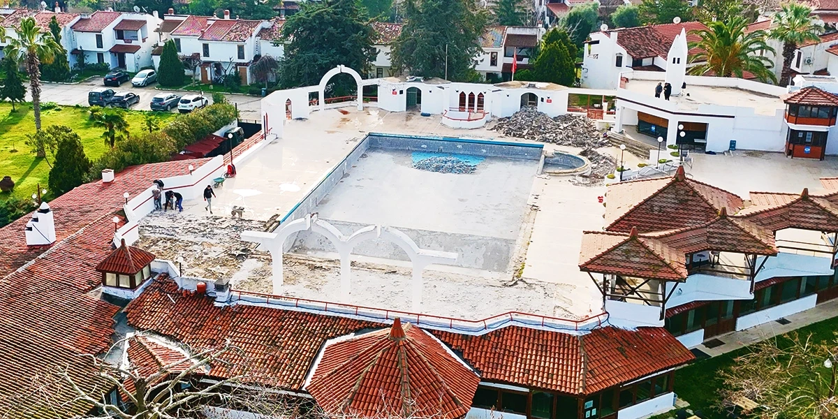 Surrounded by the natural beauty of İznik, Darka Social Facilities has long served as an important social hub for the local community. However, the swimming pool built in the 1980s began to show signs of aging due to technical shortcomings and aesthetic deterioration. Peeling surface materials and insufficient waterproofing began to pose risks to both comfort and safety. This comprehensive renovation was realized by the H2O Pool Systems team, under the supervision of Civil Engineer and Project Manager Anıl Yaman, using Serapool porcelain tiles.