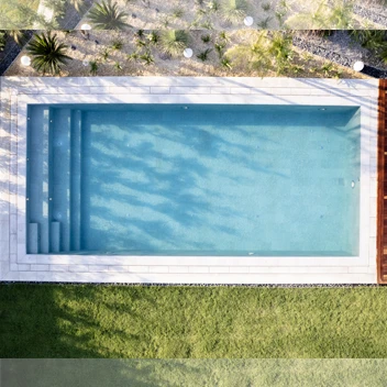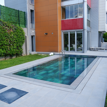 “To achieve a modern, aesthetic, and long-lasting pool that harmonizes with the overall architecture of the house, we used Serapool’s Porcelain Pool Tiles, Olympic Pool Coping, porcelain monoblock hidden grating, and porcelain Anti Slip Terrace Tiles.”