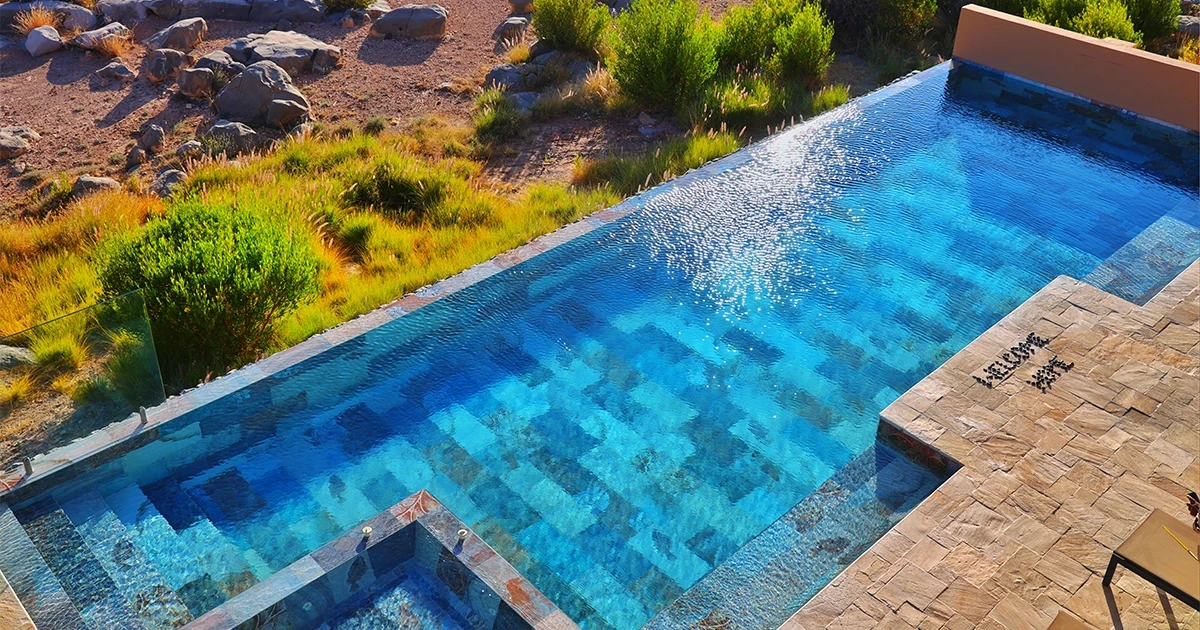 Selected as one of the Best Luxury Hotels in the Middle East in the 2025 TripAdvisor Travelers’ Choice Awards, Anantara Al Jabal Al Akhdar enhances its architecture with Serapool’s natural stone-textured porcelain tiles. The Fossil Mix pool tiles used on the pool floor enrich the water with a serene and refined aesthetic through elegant beige and grey tones. With a low water absorption rate below 0.5%, these tiles ensure long-lasting use. They also offer high resistance to UV rays, chemicals and thermal shocks. The slip resistance value of PTV ≥ 45° provides a safe pool experience for guests. Outer trim and infinity tile transitions add a sense of luxurious continuity to the design. This application offers more than just a swimming experience—it creates a safe, sophisticated and nature-integrated living space.