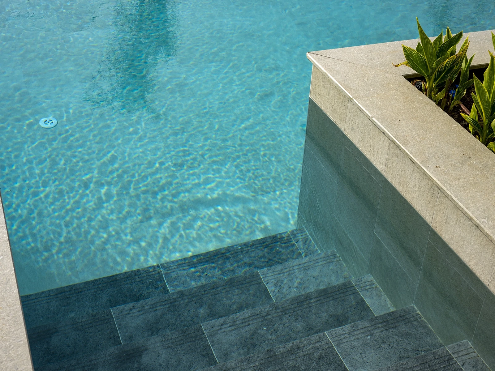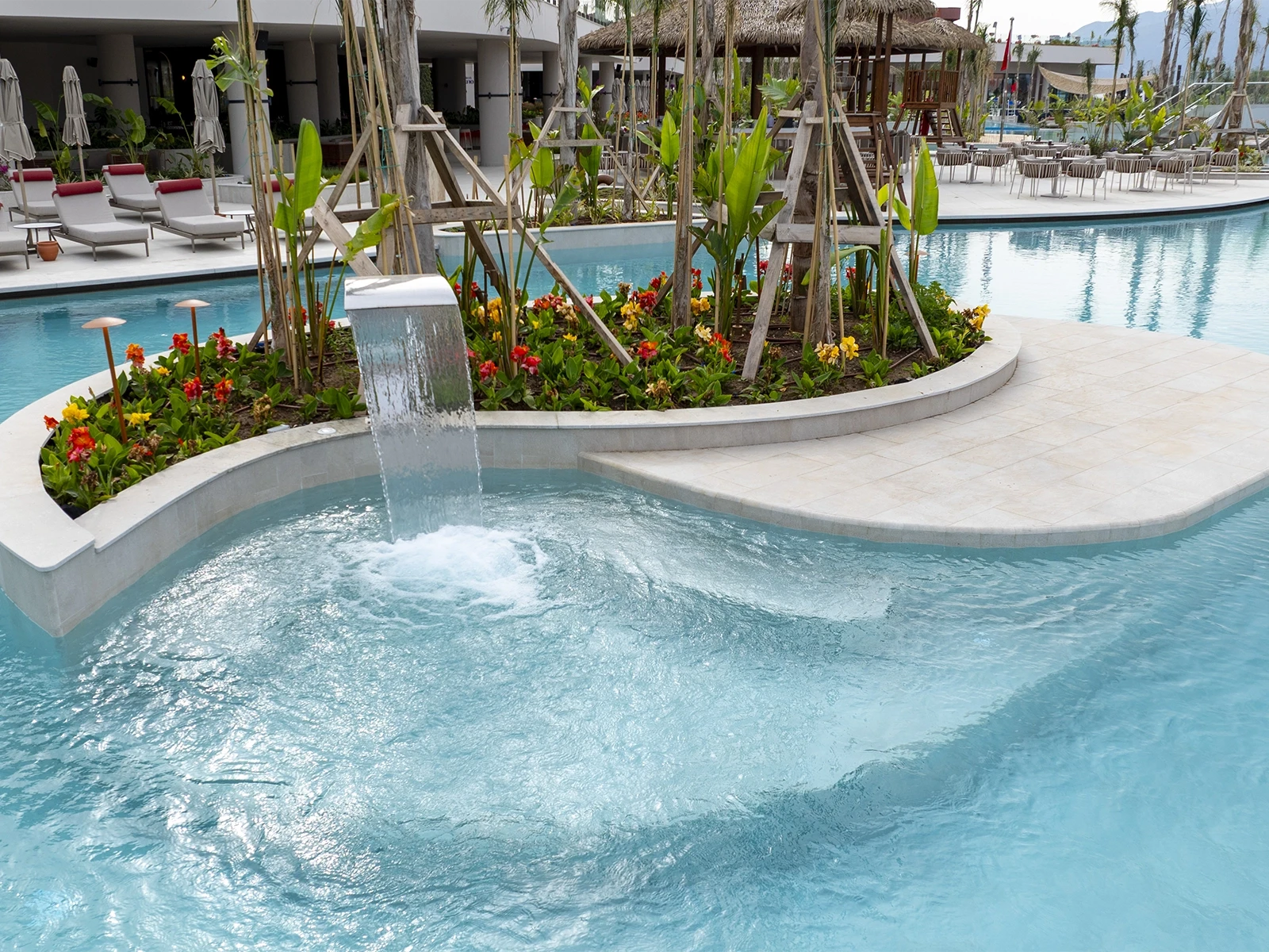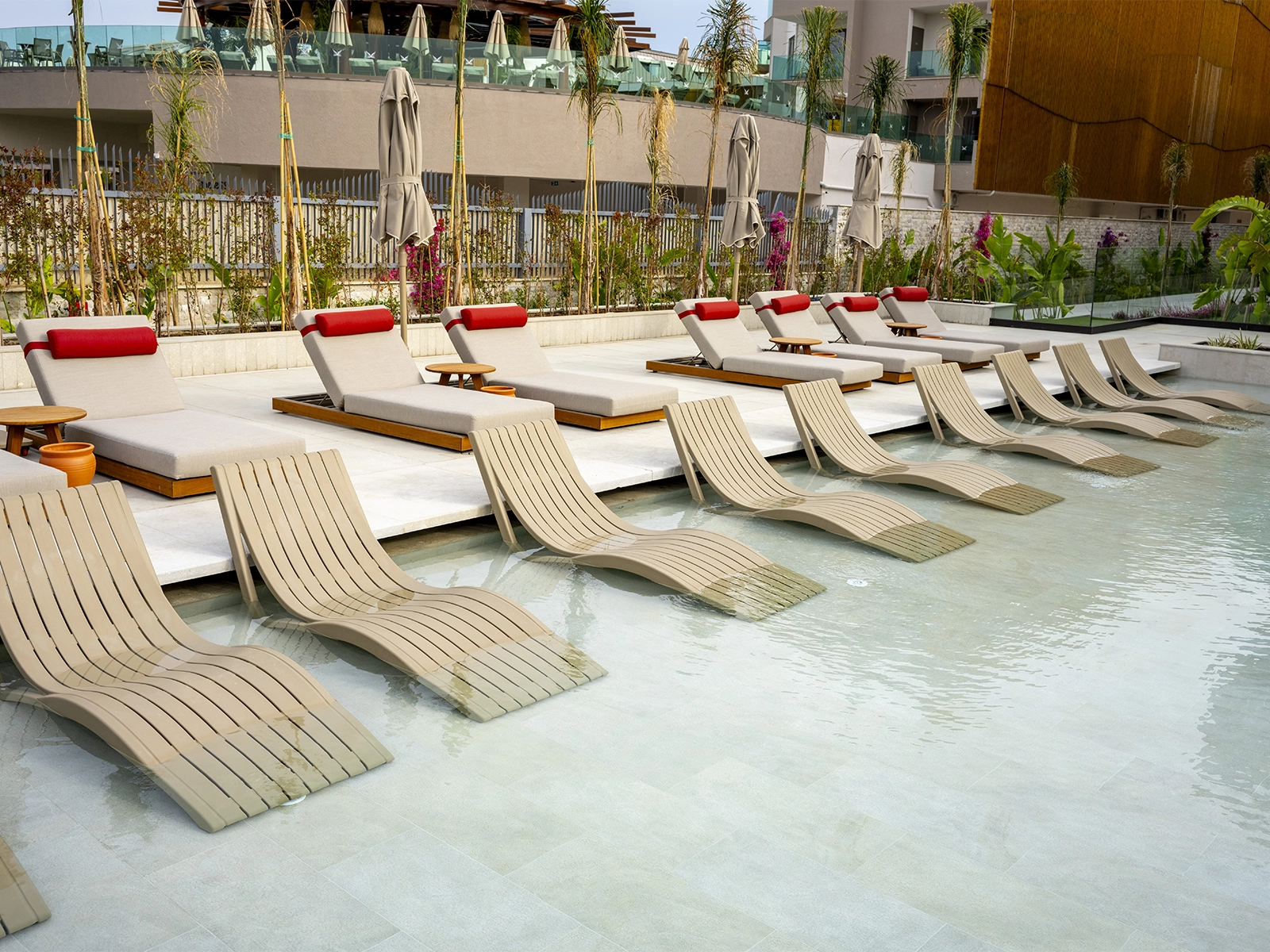 The XO Cape Arnna Hotel stands out with its modern architecture and natural landscape surrounding expansive swimming areas. On the terrace flooring, Pool Garden Beige Porcelain Anti Slip Tiles add a sense of openness with their light tones while ensuring Safe use. At the edges, Pool Garden Beige copings and monoblock gratings preserve design integrity. On the stairs, Antique Grey Anti Slip Tiles create an elegant contrast with their tonal difference. Thanks to their Non-slip and Durable properties, the selected materials deliver long-lasting performance even under heavy use, while establishing a balanced harmony of aesthetics and functionality around the pool. In this way, the project offers guests a Safe, Comfortable, and visually rich swimming experience.