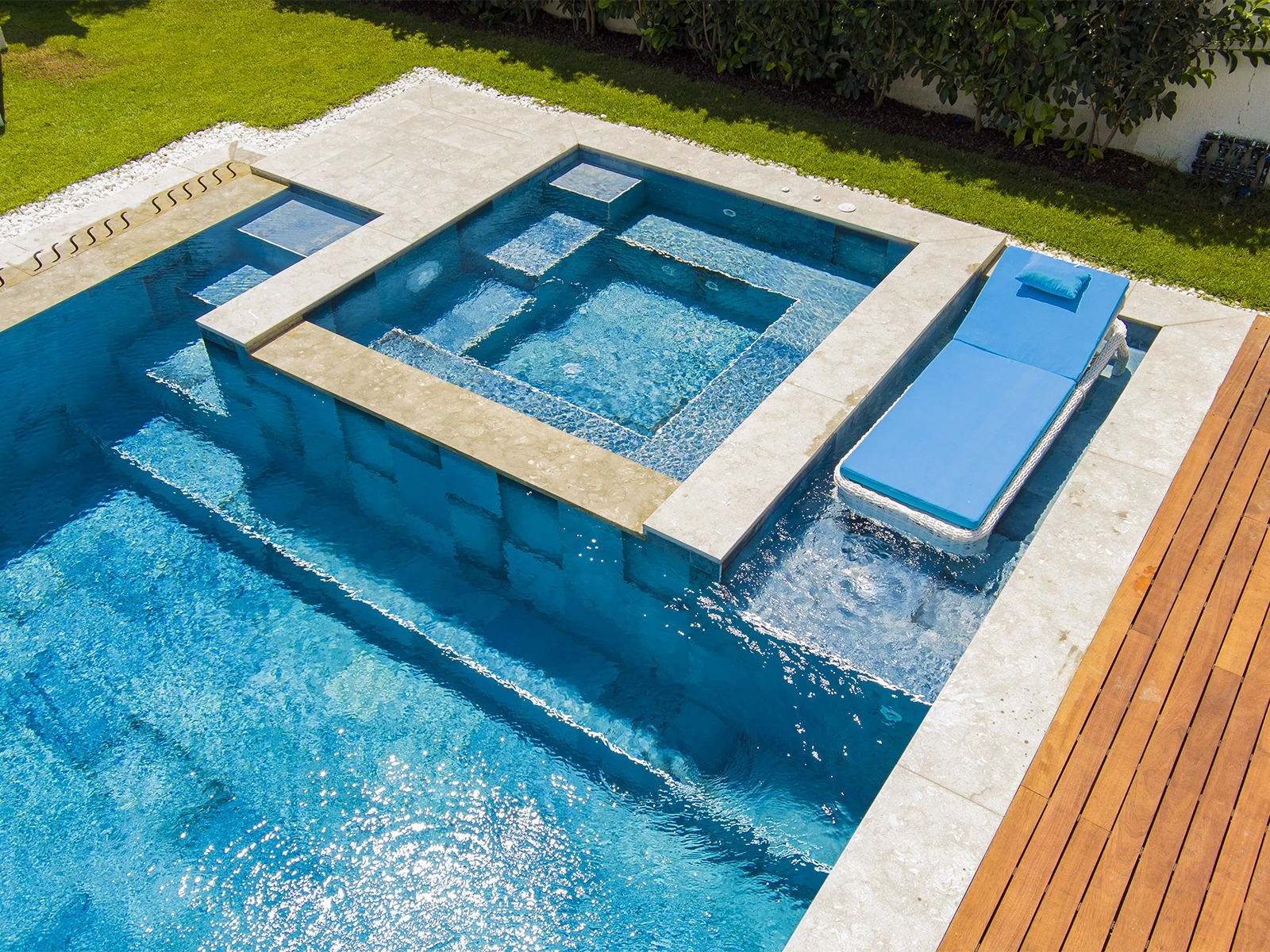 The project features Blue Bead Pool Tiles, designed with the 9-face application that blends natural blue tones with diverse textures, bringing the clarity of water and the serenity of the sky to the pool floor. With their 100% porcelain structure, the tiles provide long-lasting use thanks to their Low Water Absorption, while offering high resistance to UV Rays, pool Chemicals, and sudden temperature changes. With a PTV ≥ 45° Anti-slip value, the pool tiles ensure both Comfort and Safety at the same time.
