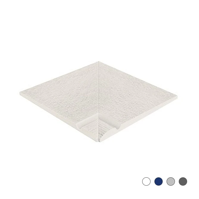 Serie Apache Bordes de Esquina Interior es una solución ideal que ofrece seguridad y estética sin romper la continuidad del suelo en las transiciones de esquinas interiores. Con un valor antideslizante PTV ≥ 45, estructura de porcelana y superficie amplia, proporciona higiene y rapidez en la aplicación. Simplifica la estructura en las esquinas interiores al ofrecer solución con un solo producto en lugar de 1 bordes y 2 azulejos para piscinas antideslizantes.