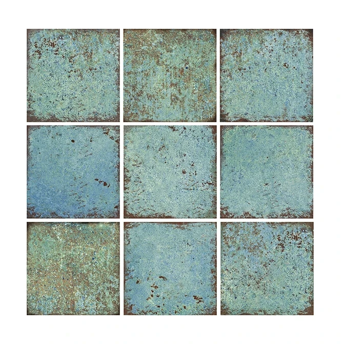 El modelo Green Wave de la Serie Nove en formato 15x15 cm aporta a las piscinas un aire vivo, fresco y sofisticado con su aspecto natural inspirado en la fusión de los tonos del mar y la naturaleza. La ligera textura envejecida de la superficie añade profundidad al espacio.