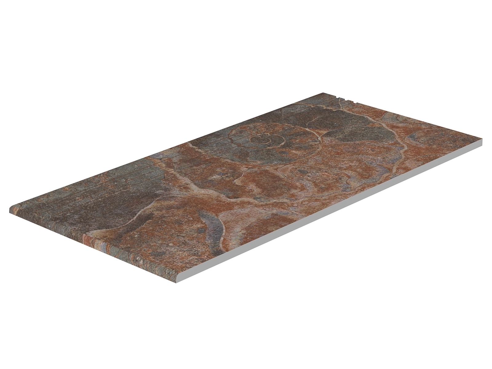 Fossil Mix marches antidérapantes en porcelaine offre une transition sûre et élégante sur les escaliers de piscine grâce à sa surface esthétique inspirée de la texture de la pierre naturelle. Sa couleur unique et sa texture antidérapante allient esthétique et fonctionnalité dans les projets professionnels.