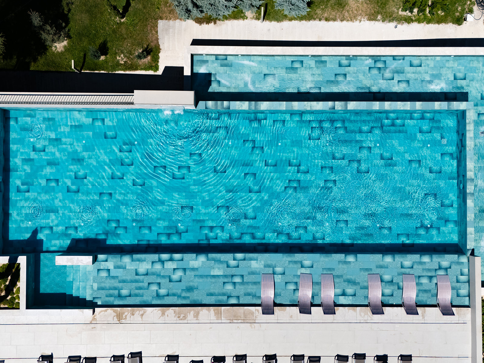 La série de carreaux de piscine Firuze Mix associe l’esprit rafraîchissant de la Méditerranée à un design moderne, réunissant esthétique et durabilité grâce à sa structure 100% porcelaine. Composée de différentes nuances de bleu, cette série captivante s’harmonise avec le mouvement naturel de l’eau et confère aux piscines un caractère unique et vibrant. Avec ses transitions de motifs dynamiques et sa surface texturée et antidérapante, Firuze Mix offre à la fois une unité visuelle et une utilisation sûre, apportant aux espaces de vie une élégance à la fois simple et saisissante.