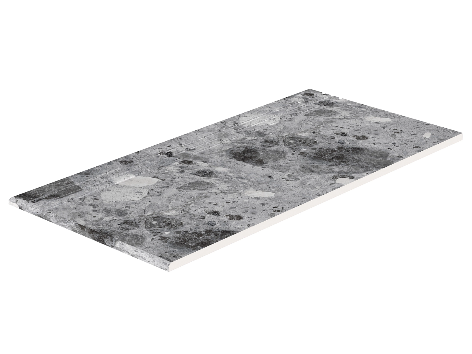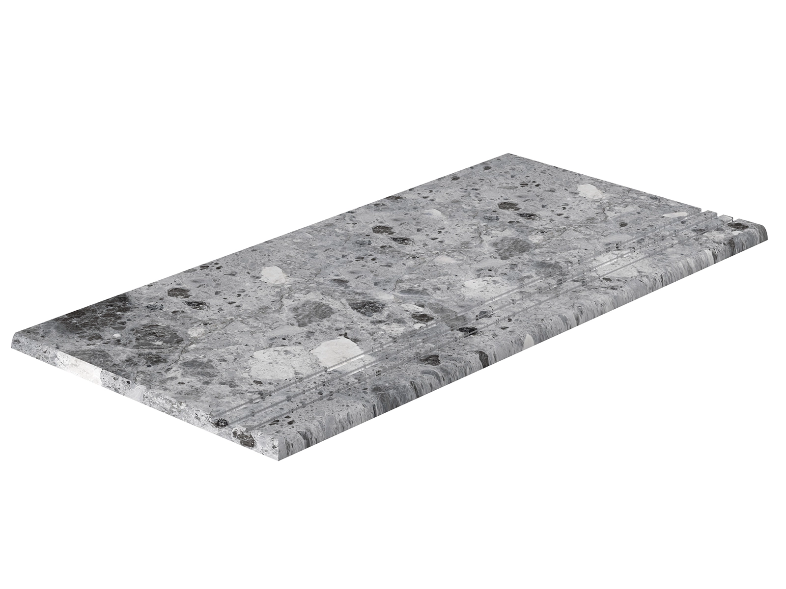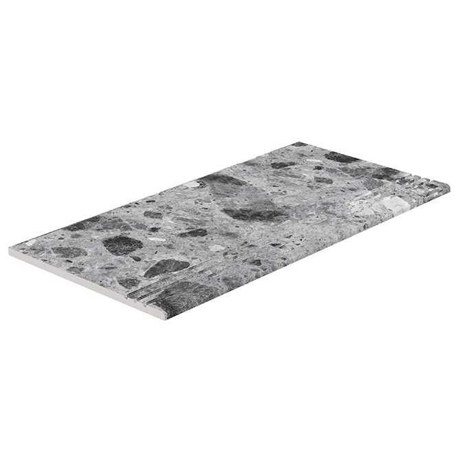 Relax Ceppo Terrazzo Grey marches antidérapantes en porcelaine associe l’apparence de la pierre terrazzo à la sécurité fonctionnelle pour offrir à la fois esthétisme et protection sur les escaliers de piscine. Grâce à sa surface spécialement texturée, elle prévient les glissades tout en garantissant une durabilité exceptionnelle grâce à sa composition 100 % porcelaine.