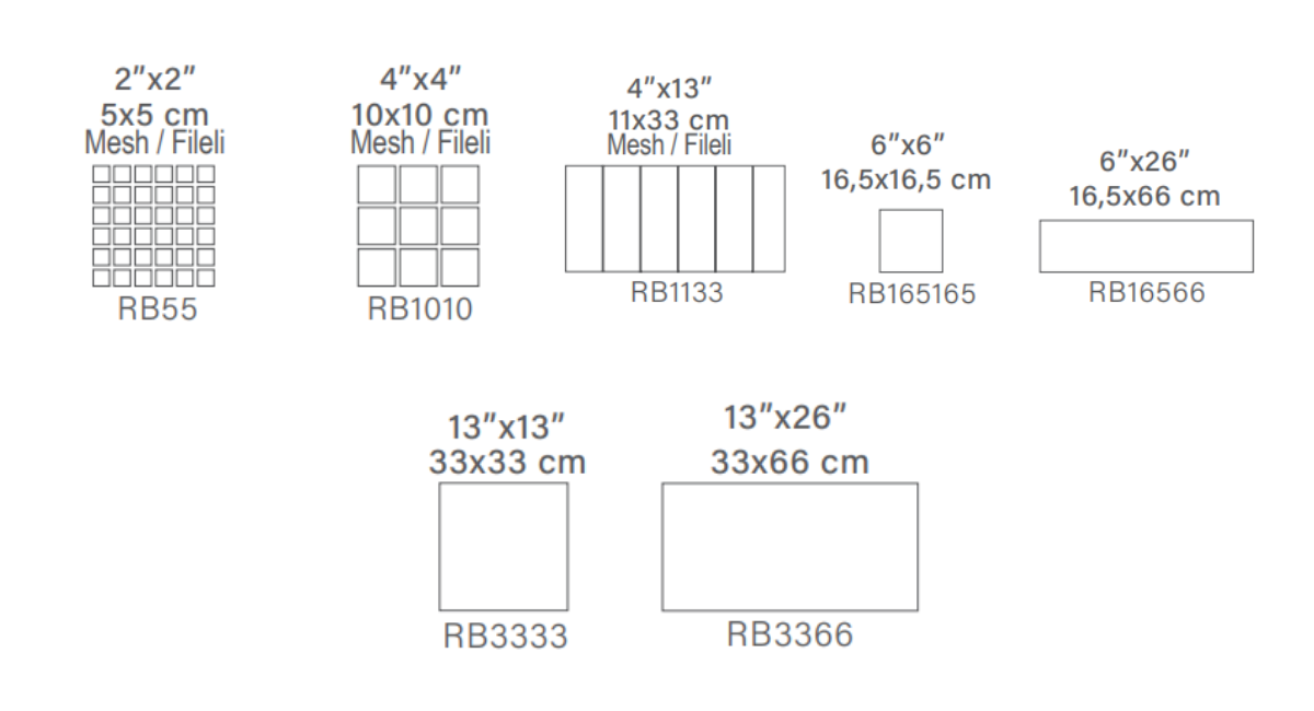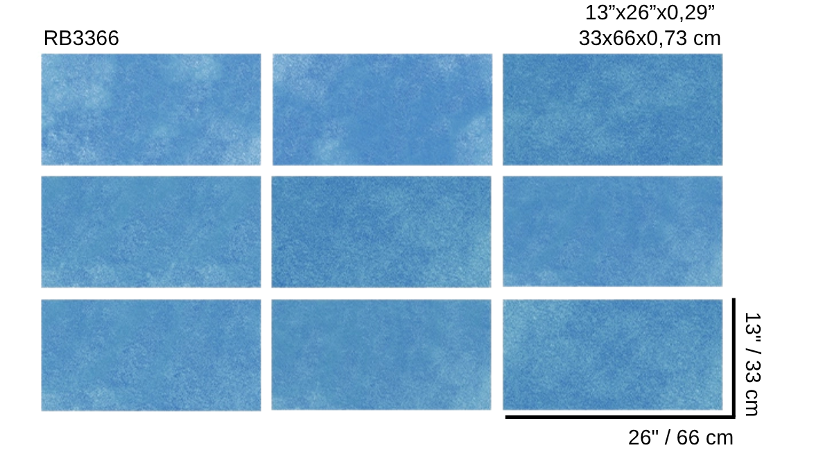 Seri, 9 karodan oluşmaktadır. Seriyi bozmadan tüm karoların rastgele döşenmesi tavsiye edilir. Ancak Relax Blue yalnızca standart üretimle sınırlı değildir. Proje özelinde ölçü ve detay bazında tamamen butik üretim yapılabilmektedir. Mimari konseptin ihtiyaç duyduğu orana, forma ya da yüzey dokusuna göre özgün çözümler geliştirilebilir. Bu yaklaşım her projenin kendi kimliğini korurken Relax serisinin zarif bütünlüğünü sürdürmesini sağlar.
