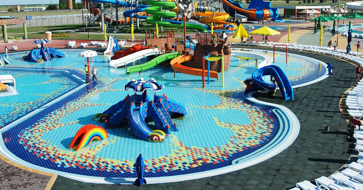 Enerjisi, eğlencesi ve dinamizmiyle öne çıkan Ukrayna Treasure Island Water Park, Serapool ürünleriyle hayata geçirilen havuz tasarımları sayesinde ziyaretçilerine güvenli ve keyifli bir deneyim sunuyor. Havuzlarda kullanılan olimpik seri porselen karolar farklı renk seçenekleriyle hem estetik bir görünüm sağlıyor hem de suyun berraklığını daha etkili şekilde yansıtıyor. Çocuk ve yetişkin alanlarında güvenliği artırmak adına pötikare havuz tutamağı tercih edilirken ıslak zeminlerde maksimum kaymazlık sağlayan pavrimento kaymaz karo ile kullanıcılar için güvenli alanlar oluşturuldu.