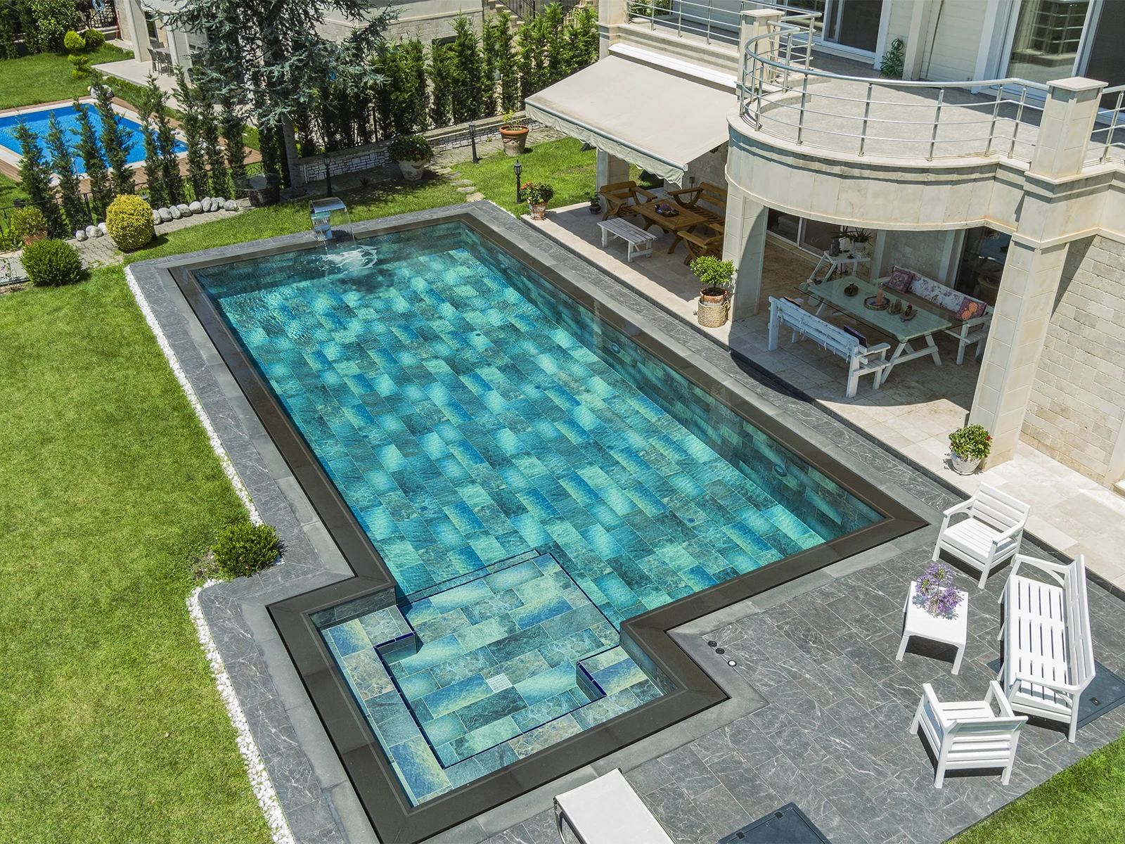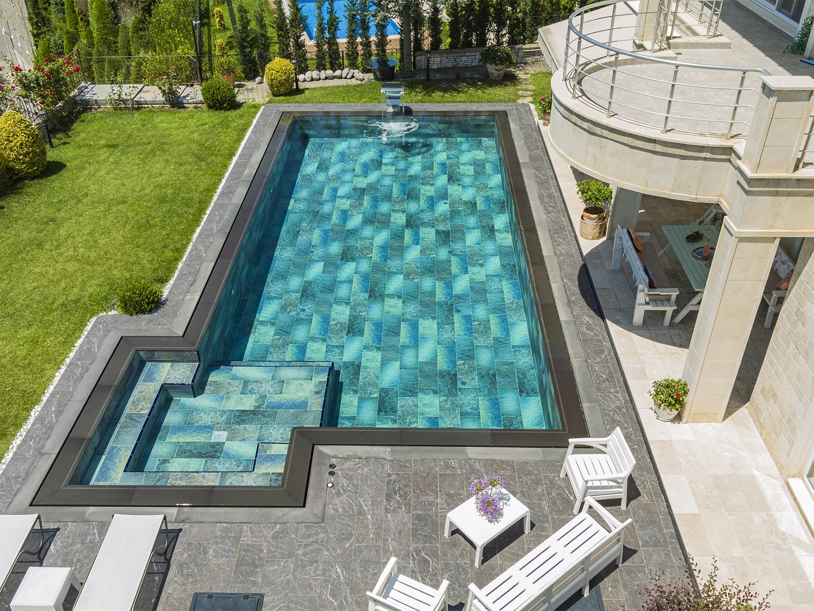 Antique Grey & Pool Garden Grey Çeşme Villa Havuzu Projesi