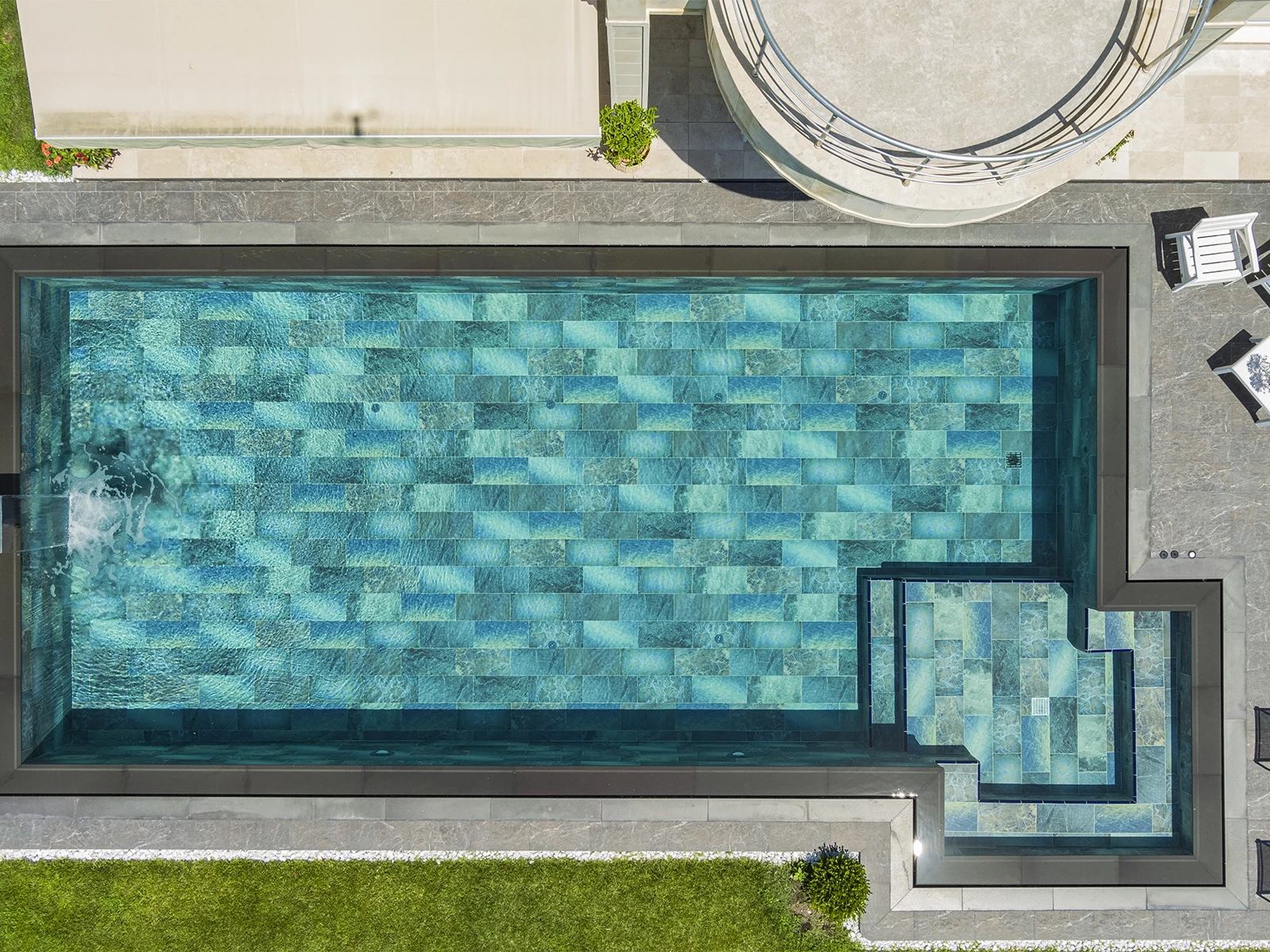 İstanbul Acarkent’te yer alan konut havuzu projesinde Olcay Mix Serisi kullanıldı. Doğadan esinlenen dokuları ve renk geçişleriyle öne çıkan Olcay Mix porselen havuz karoları havuzun zemininde derinlik ve estetik bütünlük yarattı. %0.5’in altında su emme oranına sahip olan karolar neredeyse sıfır su geçirgenliği sayesinde hijyenik bir yüzey sunar, bakteri oluşumunu engeller ve uzun ömürlü kullanım sağlar. UV ışınlarına, kimyasal etkilere ve ani sıcaklık değişimlerine karşı dirençli yapısı ile dayanıklılığı artırır. PTV≥45° kaymazlık değeri havuz içi ve çevresindeki ıslak alanlarda güvenliği en üst seviyeye taşır. Projede kullanılan porselen dışbükey parçalar köşe ve kenar geçişlerinde hem estetik bir bitiş sağlar hem de kullanıcı güvenliğini destekler. Böylece havuz tasarımı hem teknik hem de görsel açıdan bütünlük kazanır.