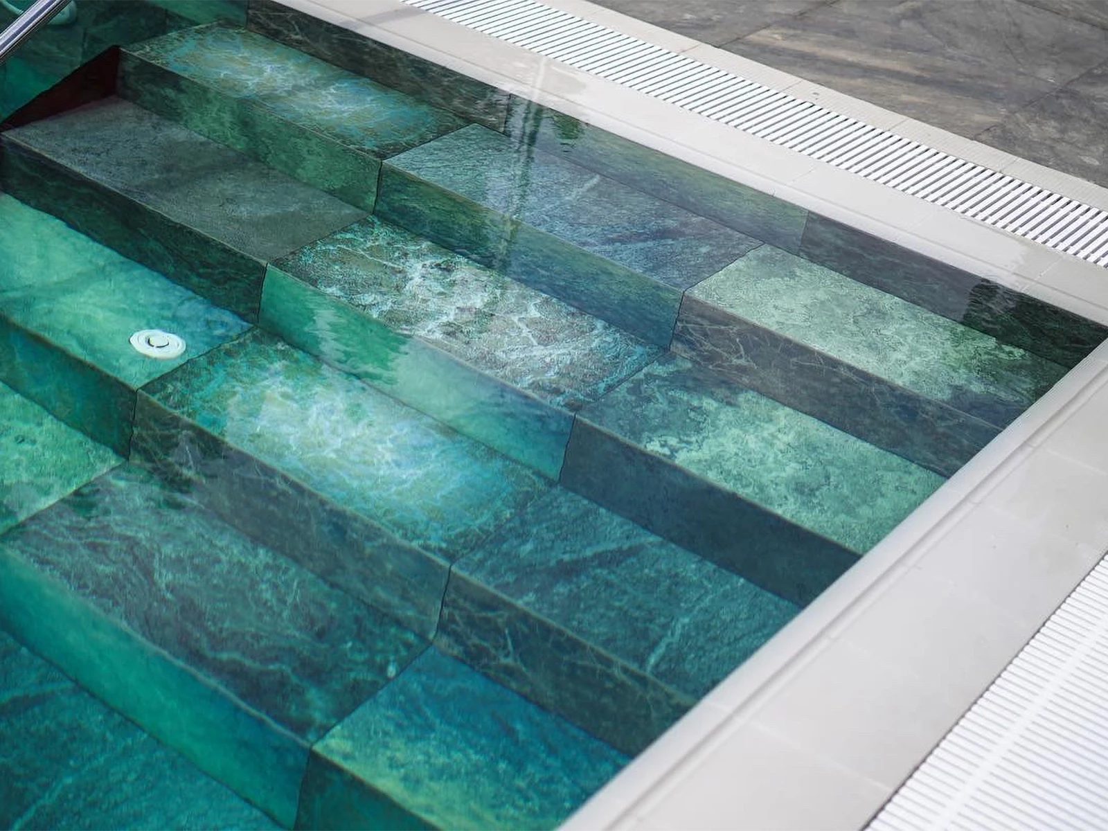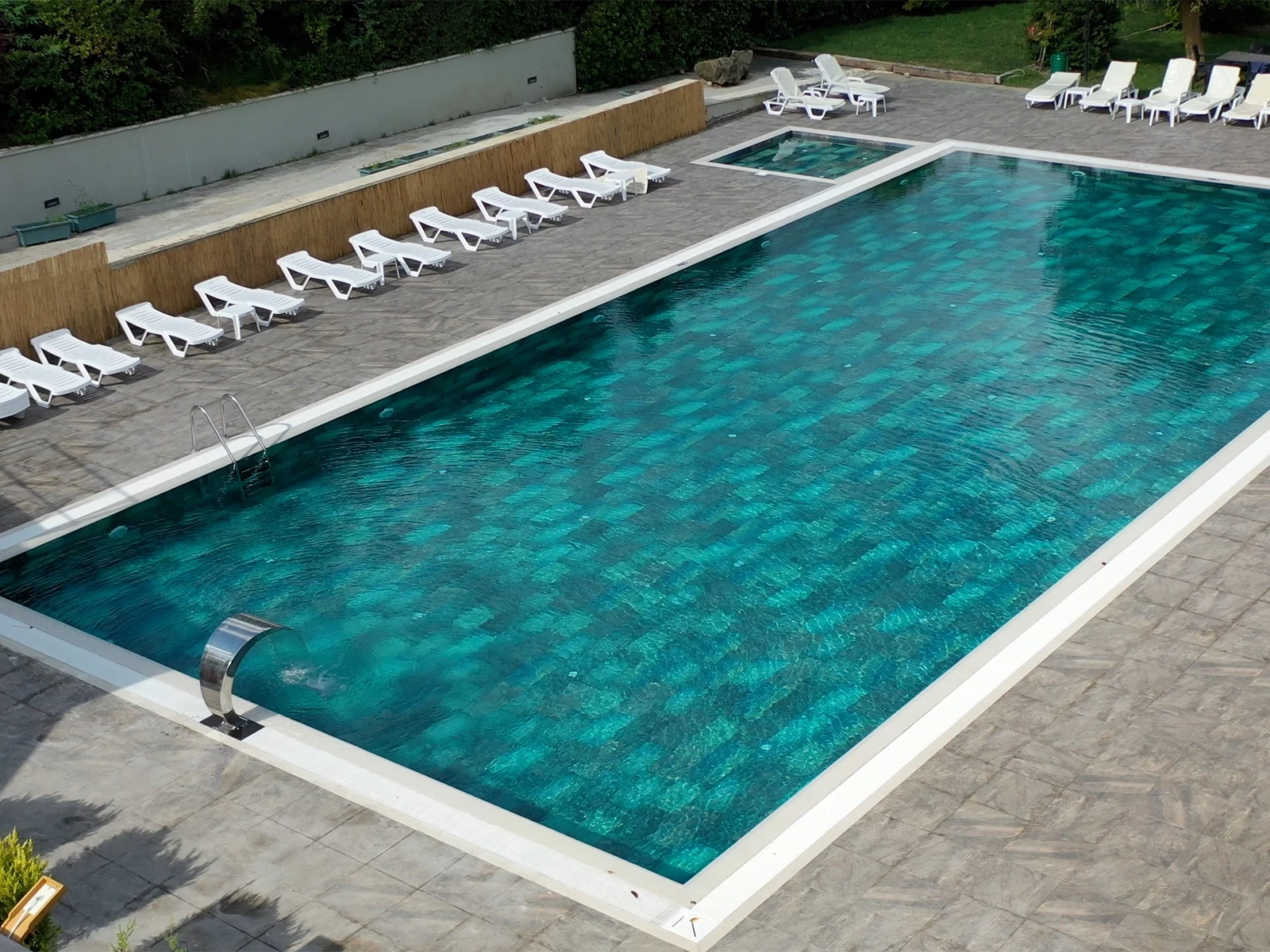 Projede kullanılan Olcay Mix porselen havuz karosu serisinin doğal taş dokusunu andıran karoları suyun içindeki ton geçişlerini belirginleştirerek yüzme alanına derinlik kazandırıyor. Havuz çevresinde kullanılan Pötikare kaymaz karo ise güvenlik ve konforu bir arada sunuyor. Kaymaz yüzeye sahip olan karo, havuz ve çevresinde güvenliği sağlıyor.