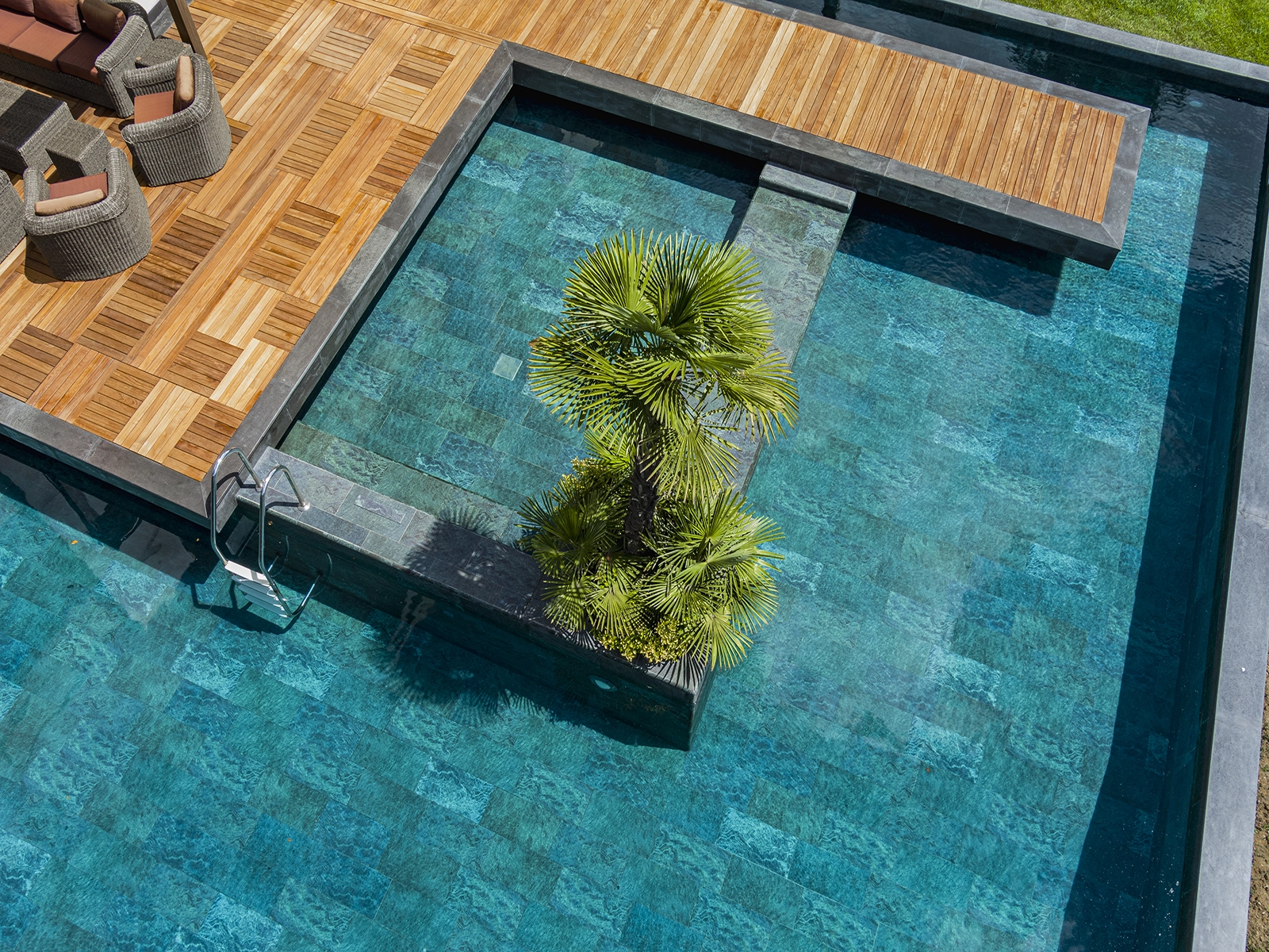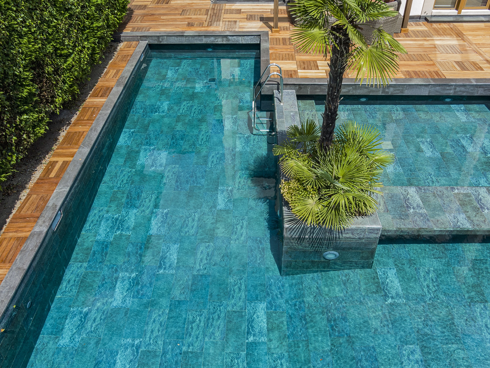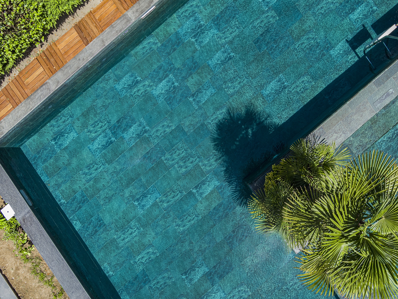 İstanbul’un seçkin yerleşimlerinden Acarkent Sitesi’nde konumlanan özel konut projesi, çağdaş mimariyi Serapool’un doğal taş dokulu porselen karolarıyla buluşturuyor. Verde Guatemala serisi, yeşilin zengin ve koyu tonlarıyla suya derinlik katıyor. Canlı dokusu, havuz alanına doğayla bütünleşen bir atmosfer kazandırıyor. %100 porselen yapısıyla karoların su emme oranı %0,5’in altında kalıyor. UV ışınlarına, kimyasal etkilere ve termal şoklara karşı yüksek dayanım sunuyor. PTV ≥ 45° kaymazlık değeri sayesinde ıslak alanlarda maksimum güvenlik sağlanıyor. Verde Guatemala dışbükey, kenar geçişlerinde hem estetik süreklilik hem de kullanım konforu sunuyor.