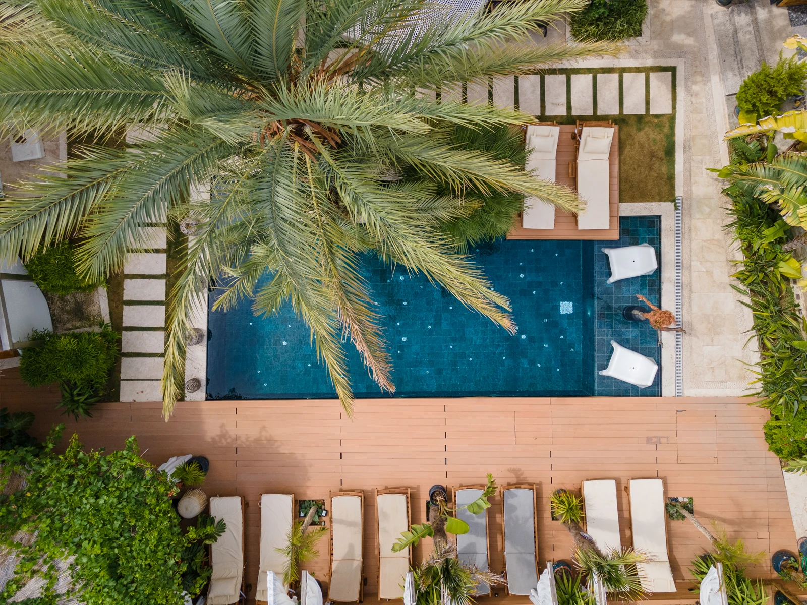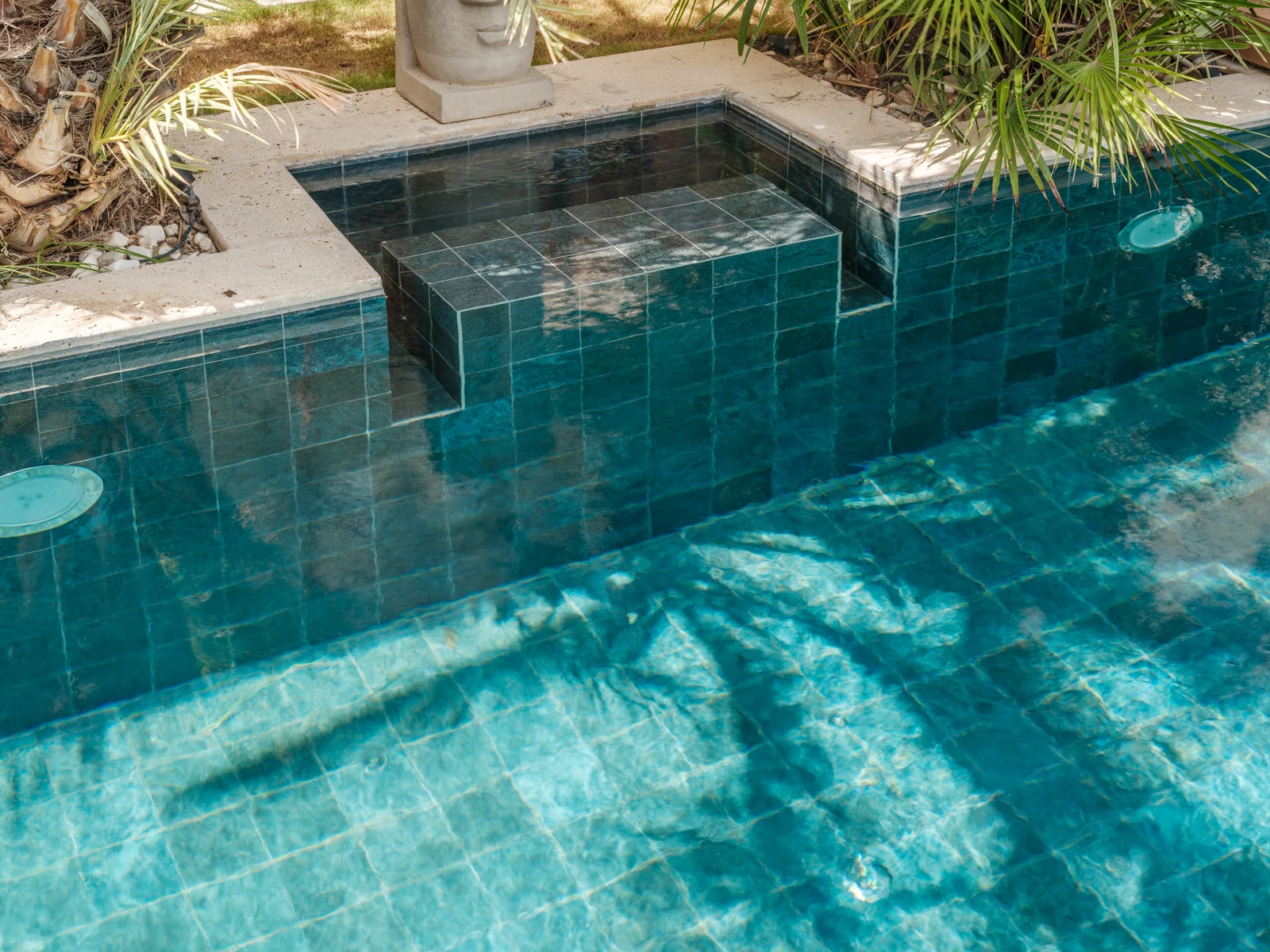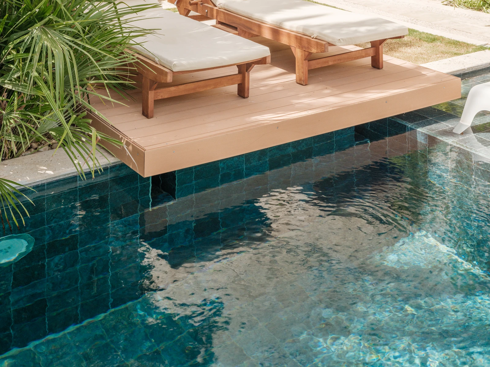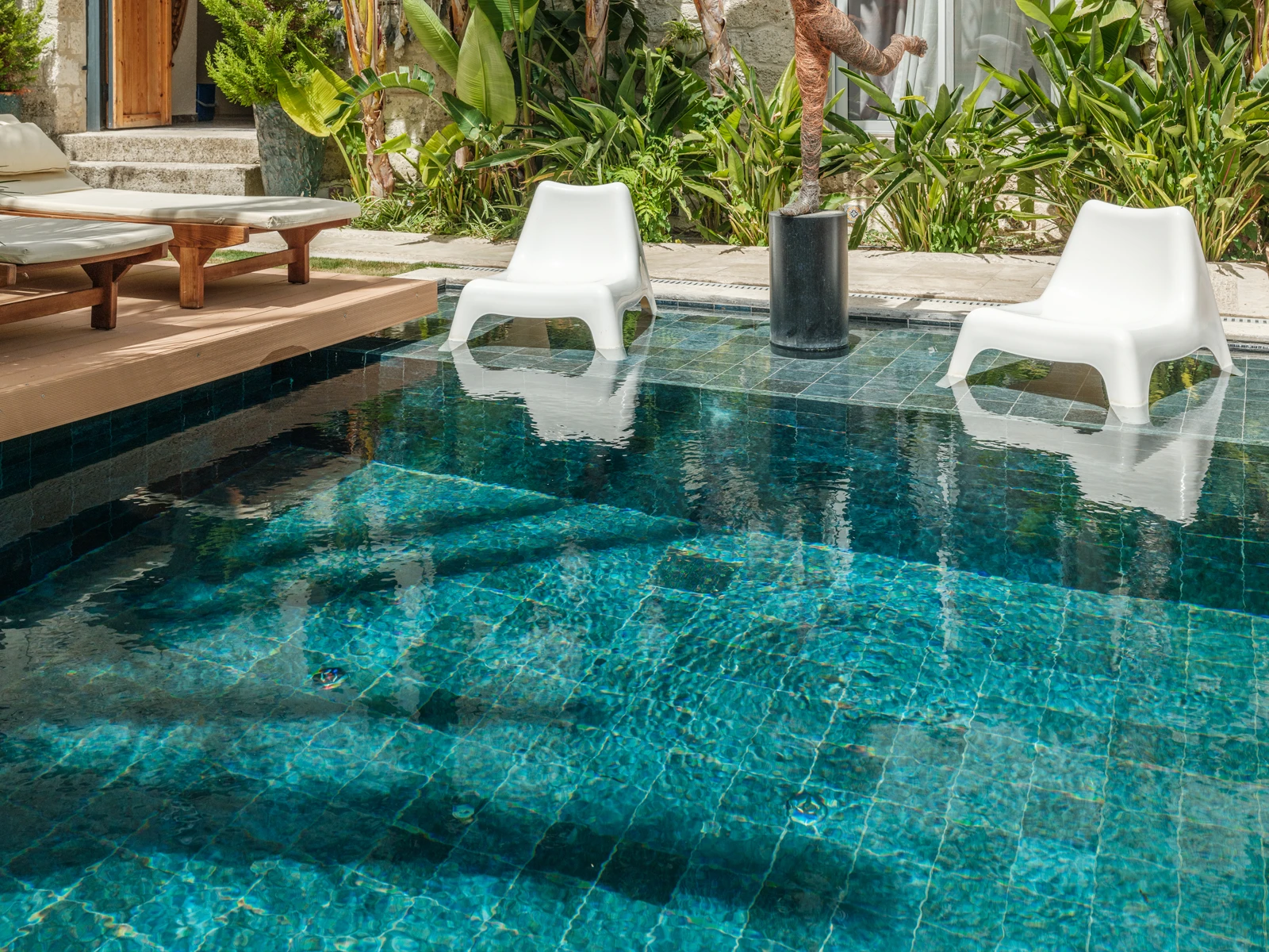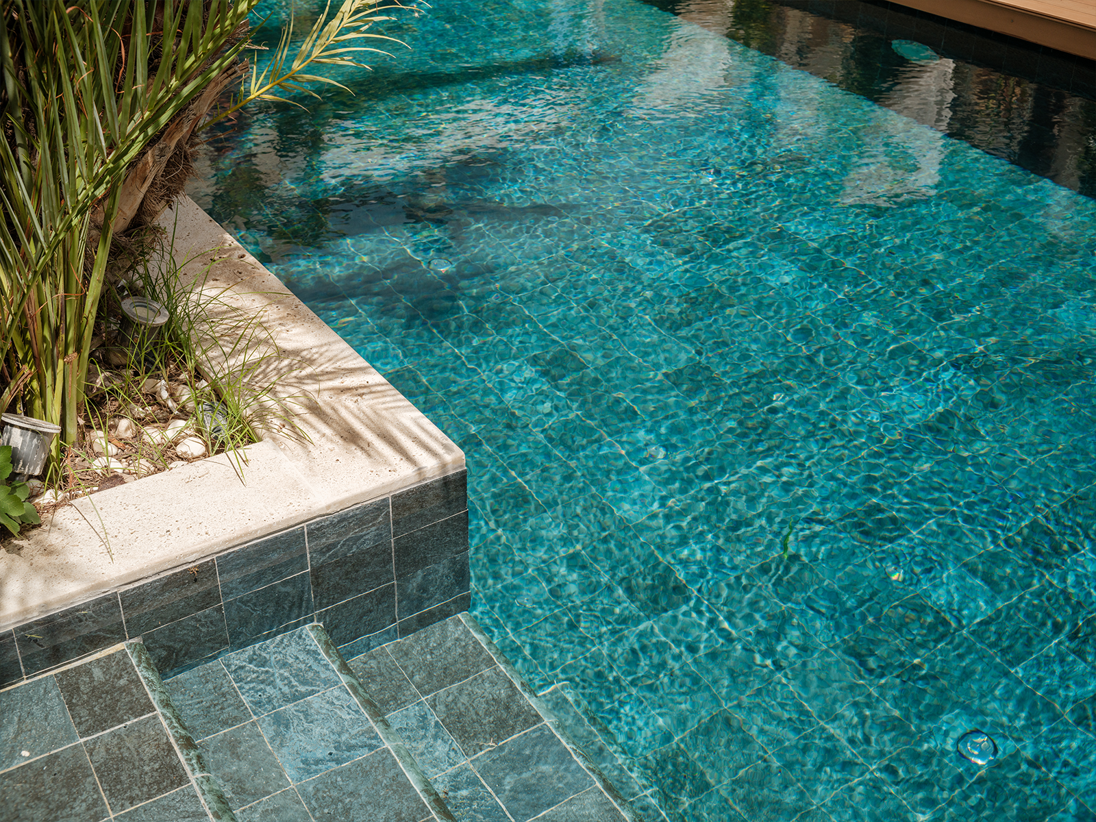 Alaçatı’da doğanın canlı dokusunu modern konforla buluşturan ABC Hotel’in havuzu tropikal peyzajın çevrelediği zarif bir mekan olarak öne çıkıyor. Palmiye ağaçlarının gölgesinde şekillenen alan gün ışığının oyunlarıyla birlikte dingin bir atmosfer sunuyor. Otel havuzunda kullanılan Verde Guatemala havuz karosu serisi derin yeşil tonları ve dokulu yapısıyla havuzun doğal çevreyle kurduğu bağı güçlendiriyor. Suya yansıyan koyu mavi-yeşil geçişler, mekâna görsel süreklilik ve sakinlik katıyor. Porselen yapısının %0.5’in altında düşük su emme oranı, uzun ömürlü kullanım sağlarken; kimyasallara ve UV ışınlarına karşı dayanıklılığı, yoğun otel kullanımına uygun teknik performans sunuyor. PTV ≥ 45° kaymaz yüzeyi, güvenli bir deneyimi desteklerken; estetik çizgileriyle mekâna zarif bir bütünlük kazandırıyor. Bu havuz, yalnızca bir yüzme alanı değil, doğanın renkleriyle şekillenen huzurlu bir yaşam deneyimi olarak ziyaretçilerini karşılıyor.
