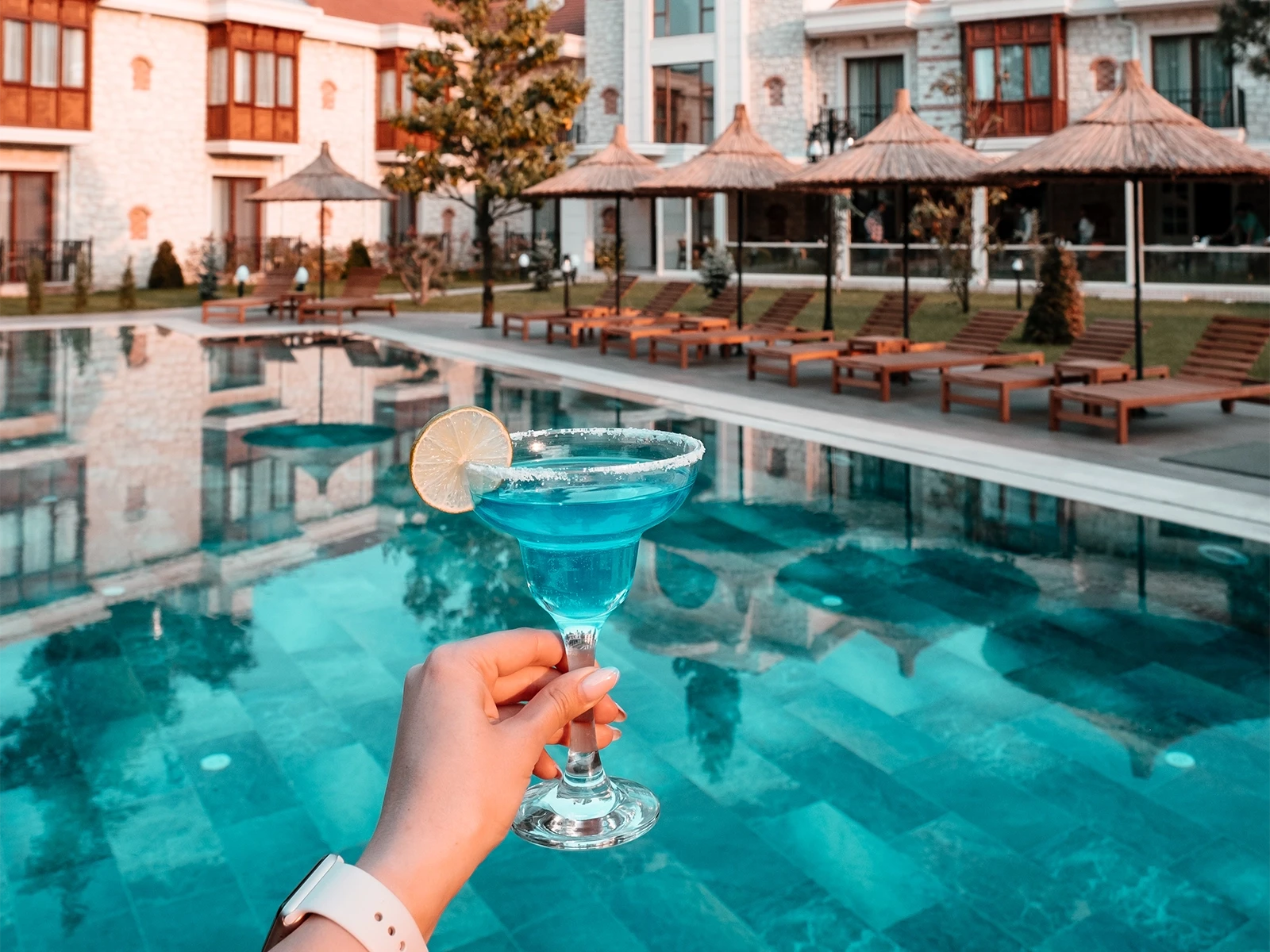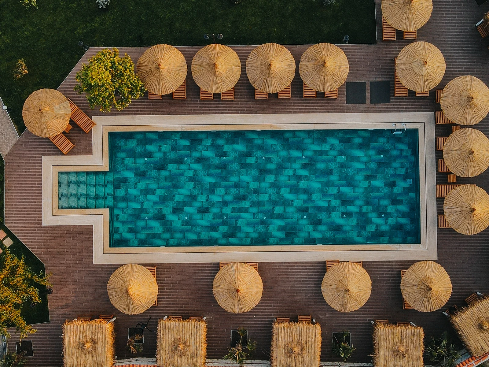 Doğanın dinginliğiyle bütünleşen Baltürk Garden Sapanca Hotel havuzu misafirlerine huzurlu bir atmosfer sunarken kullanılan malzemelerle de estetik ve dayanıklılığı bir araya getiriyor. Havuzun yüzeyinde tercih edilen Olcay Mix Serisi, doğal taş dokusunu çağrıştıran tonlarıyla suya farklı bir derinlik katıyor. Havuzun iç kenar detaylarında kullanılan Olcay Mix dışbükey ve Köşe parçaları ise hem güvenliği hem de kusursuz bir bitişi garanti ediyor. Bu özel parçalar köşelerde şıklığı tamamlarken aynı zamanda havuza güvenlik katıyor.