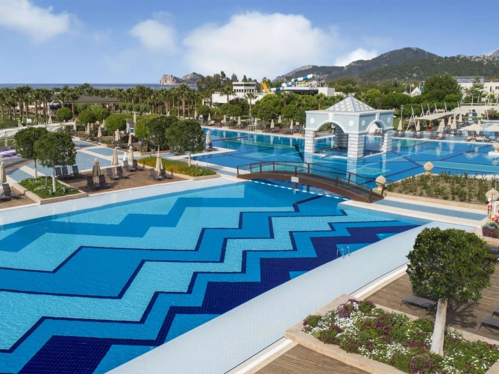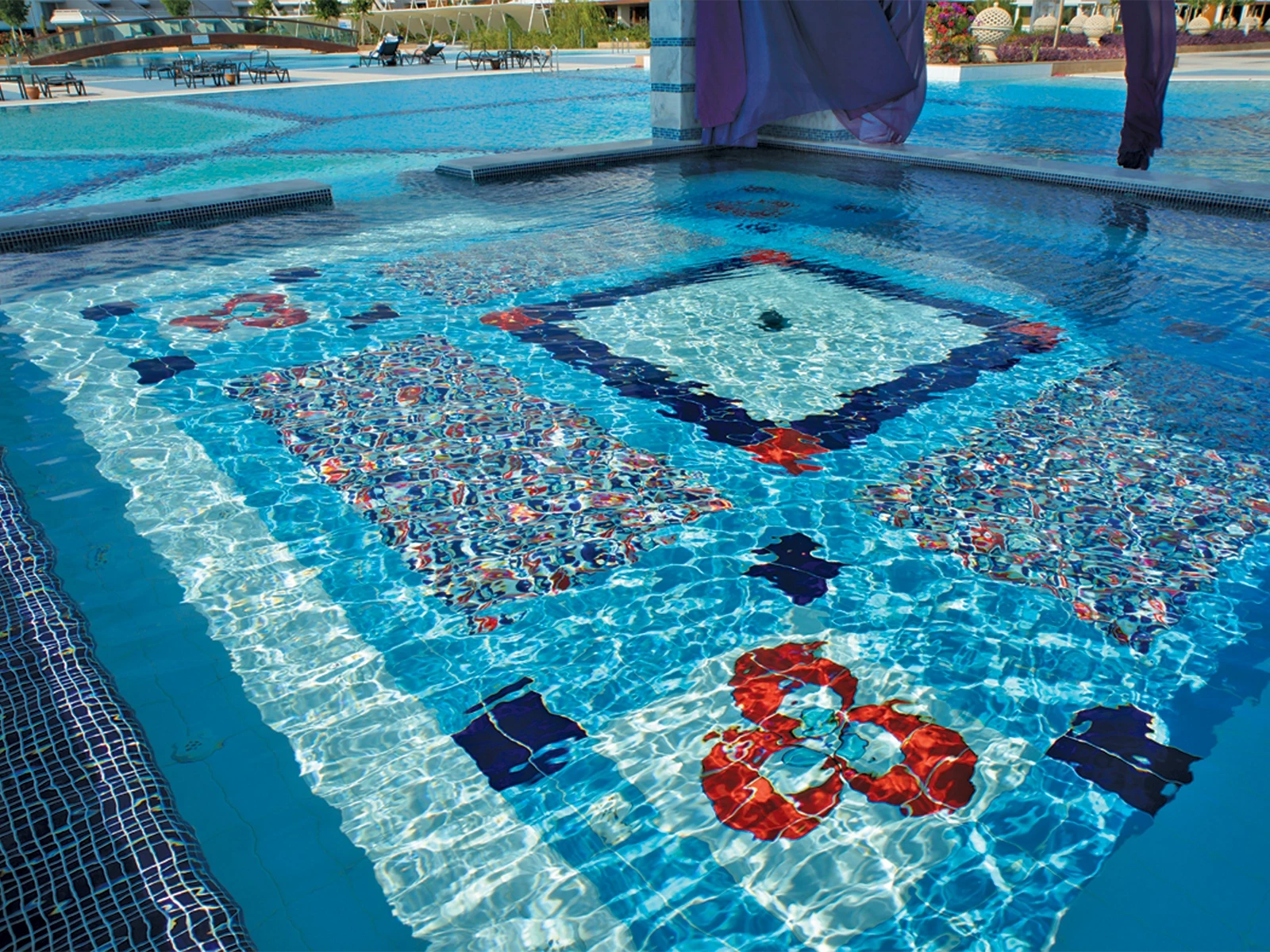 Hilton Dalaman Sarıgerme Resort & Spa otelinin geniş yüzme havuzları yalnızca estetik tasarımıyla değil kullanılan Serapool porselen havuz kaplama ürünleriyle öne çıkıyor. Projenin tümünde tercih edilen Porselen Havuz Mozaikleri suyun berraklığını ön plana çıkaran mavi ve yeşil tonlarıyla havuzlara derinlik katıyor. Olimpik Seri Porselen Havuz Karoları dayanıklılık ve düşük su emme oranıyla uzun yıllar ilk günkü görünümünü korurken PTV ≥ 45° kaymazlık değeri sayesinde güvenli kullanım sağlıyor. Havuz tabanında uygulanan Fotosera Porselen Havuz Karoları ise özel desenleriyle mekâna sanatsal bir kimlik kazandırıyor.