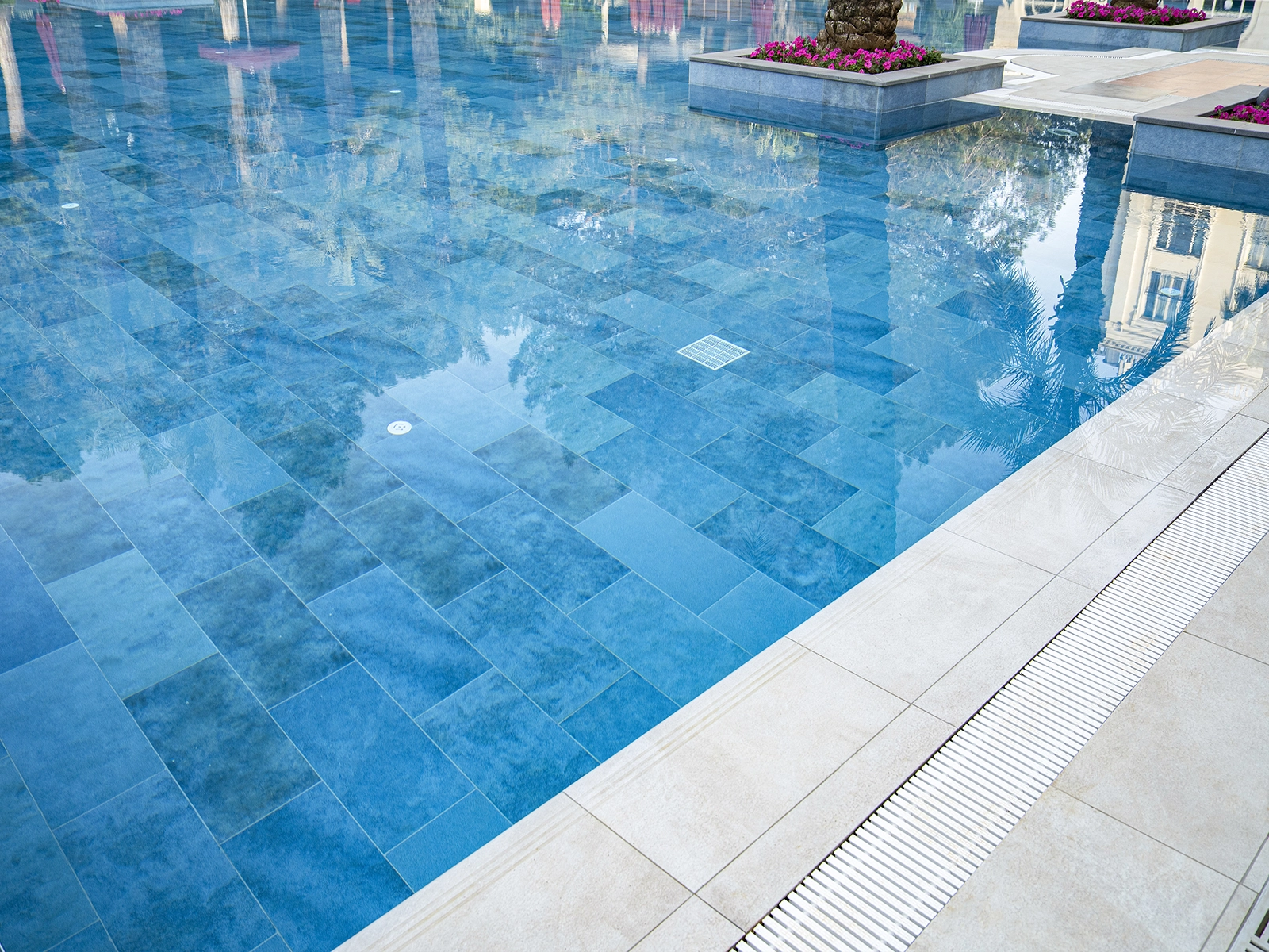 Antalya’da konumlanan IC Hotels Airport, çağdaş mimari çizgisini Serapool’un yenilikçi porselen çözümleriyle tamamlıyor. Havuz iç yüzeyinde kullanılan Marin Serisi, turkuazın zarif tonlarıyla suya doğal bir ferahlık kazandırıyor. Kenar geçişlerinde pötikare havuz tutamağı fonksiyonelliği artırıyor. Zemin bütünlüğü Marin dışbükey parçalar ile tamamlanıyor. Tüm yüzeyler %0,5’in altındaki su emme oranı sayesinde uzun ömürlü performans sunuyor. UV ışınlarına, kimyasallara ve termal şoklara karşı yüksek direnç gösteriyor. Pool Garden Beige teras kaymazları ve merdiven kaymazı hem estetik uyumu koruyor hem güvenliği destekliyor. Uygulama sadece bir yüzme alanı sunmakla kalmıyor, aynı zamanda lüks yaşam deneyimini; estetik, güvenlik ve konfor bütünlüğüyle yeniden tanımlıyor.