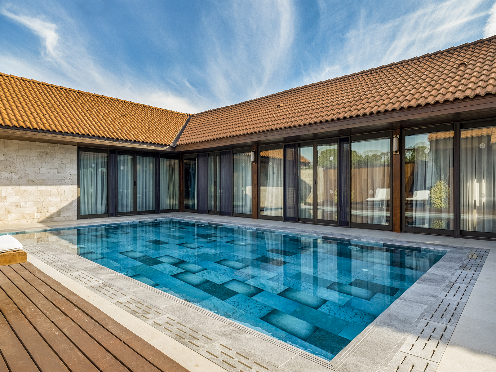 Antalya’da konumlanan IC Hotels Residence, mimari estetiği Serapool’un yenilikçi porselen çözümleriyle bütünleştiriyor. Firuze Mix Serisi doğal tonlarıyla suyun berraklığına derinlik katarken Pool Garden Grey ve Pool Garden Beige serilerine ait merdiven kaymazları ve monoblok hidden ızgara, geçiş alanlarında bütünsel bir lüks tasarımı destekliyor. %0,5’in altındaki su emme oranı sayesinde ürünler uzun ömürlü performans gösteriyor. UV ışınlarına, kimyasallara ve termal şoklara karşı dayanıklılık sunuyor. PTV ≥ 45° kaymazlık değeri ile yüzey güvenliğini artırıyor. Tasarım ve işlevin kusursuz birleşimi, yalnızca bir yüzme alanı değil; estetik dengesi, teknik gücü ve konforlu yapısıyla rafine bir yaşam deneyimi sunuyor.