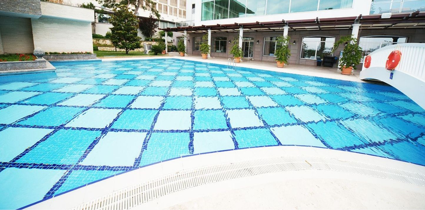 Kilikya Palace Otel geniş havuz alanında mimari ihtişamı Serapool’un profesyonel porselen çözümleriyle buluşturuyor. Pötikare kaymaz karo desenli yapısıyla zemin yüzeyine ritmik bir dinamizm katıyor. Porselen havuz mozaikleri suyun berraklığıyla birleşerek güçlü bir bütünlük sağlıyor. Havuz karoları %0,5’in altında su emme oranı sunuyor. UV ışınlarına, kimyasal etkilere ve termal şoklara karşı üstün dayanım gösteriyor. PTV ≥ 45° kaymazlık değeriyle yoğun kullanım alanlarında maksimum güvenlik sağlıyor. Pötikare havuz tutamak kenar hatlarını zarif bir şekilde tanımlıyor. Porselen dışbükey parçalar geçiş bölgelerinde estetik ve fonksiyonel uyum sağlıyor.
