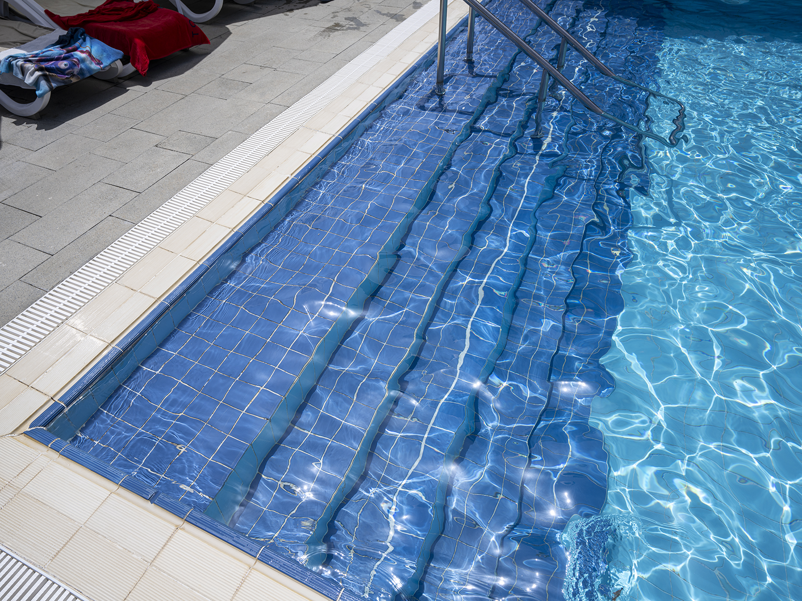 Antalya Side’de konumlanan Novum Garden Side Hotel modern mimari çizgilerini Serapool’un doğal taş dokulu porselen ürünleriyle buluşturuyor. Havuz zemininde kullanılan Snow White, Marin ve Antique Beige serileri beyaz, mavi ve bej tonlarıyla suya ferah, dengeli ve estetik bir atmosfer kazandırıyor. %0,5’in altındaki su emme oranı sayesinde karolar uzun ömürlü kullanım sunuyor. UV ışınlarına, kimyasal etkilere ve termal şoklara karşı direnç gösteriyor. Kaymazlık değeri PTV ≥ 45° olan yüzey, güvenliği artırıyor. Marin merdiven kaymazı ve Pool Garden Grey flex ızgara, geçiş alanlarında işlevselliği ve bütünlüğü destekliyor. Uygulama yalnızca yüzme değil estetik, güvenlik ve konforu bir araya getiren lüks bir yaşam deneyimi sunuyor.