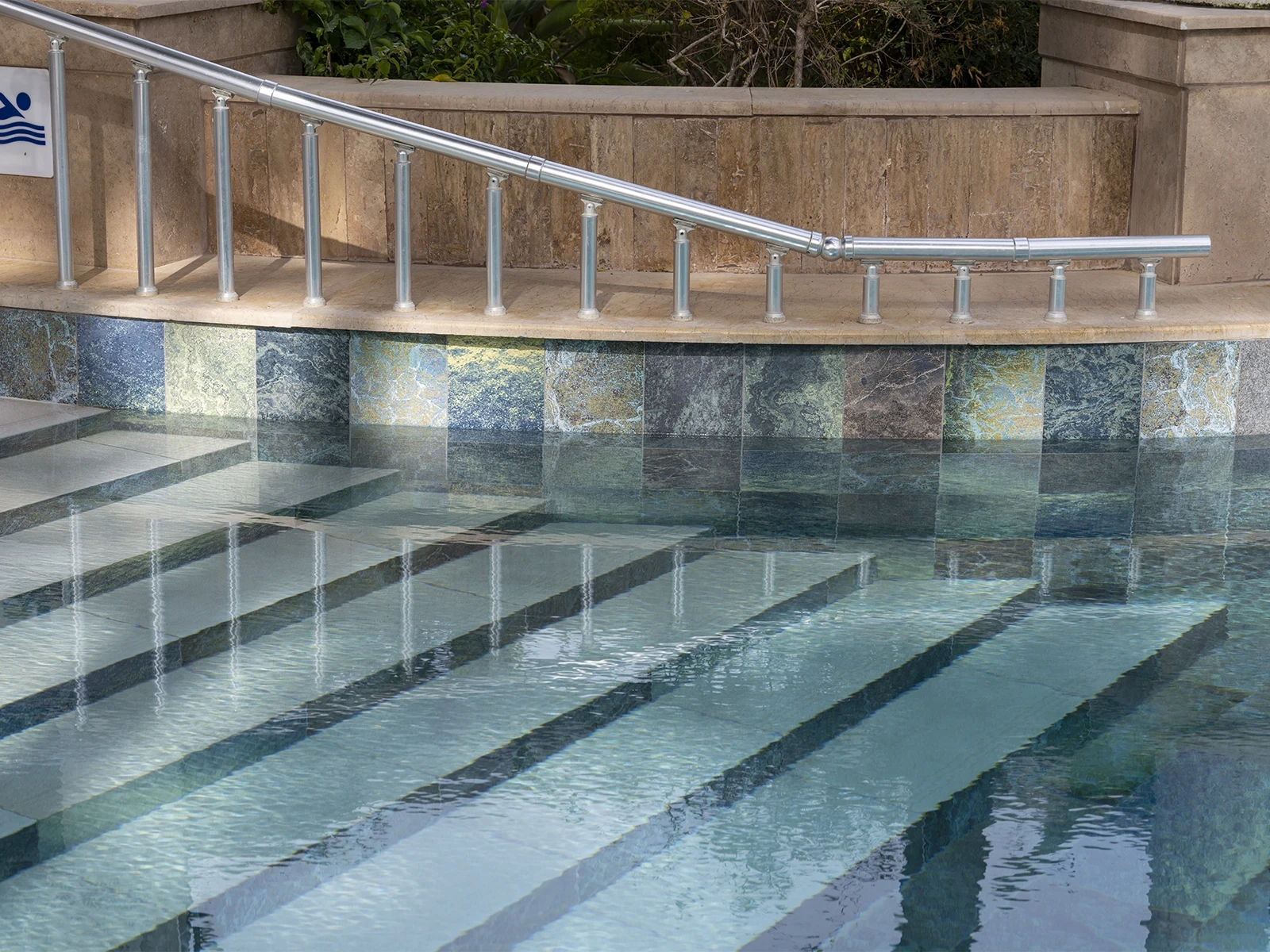 Oleander Hotel Havuzu Projesinde Serapool’un estetik ve fonksiyonelliği buluşturan ürünleri tercih edildi. Havuz zemininde kullanılan Olcay Mix Serisi porselen karolar doğal taş dokusunu yansıtan yapısıyla suya derinlik ve hareket kattı. Işıkla birlikte değişen tonlar havuz yüzeyinde sürekli farklı yansımalar oluşturarak güçlü bir görsel etki sundu. Kullanıcı güvenliği için projede özel çözümler de uygulandı. Pötikare havuz tutamağı havuz kenarları için güvenli bir tutuş sağlarken Pool Garden Beige merdiven kaymazı ıslak zeminlerde kayma riskini en aza indirerek havuz giriş ve çıkışlarında otel misafirlerinin güvenliğini sağladı.