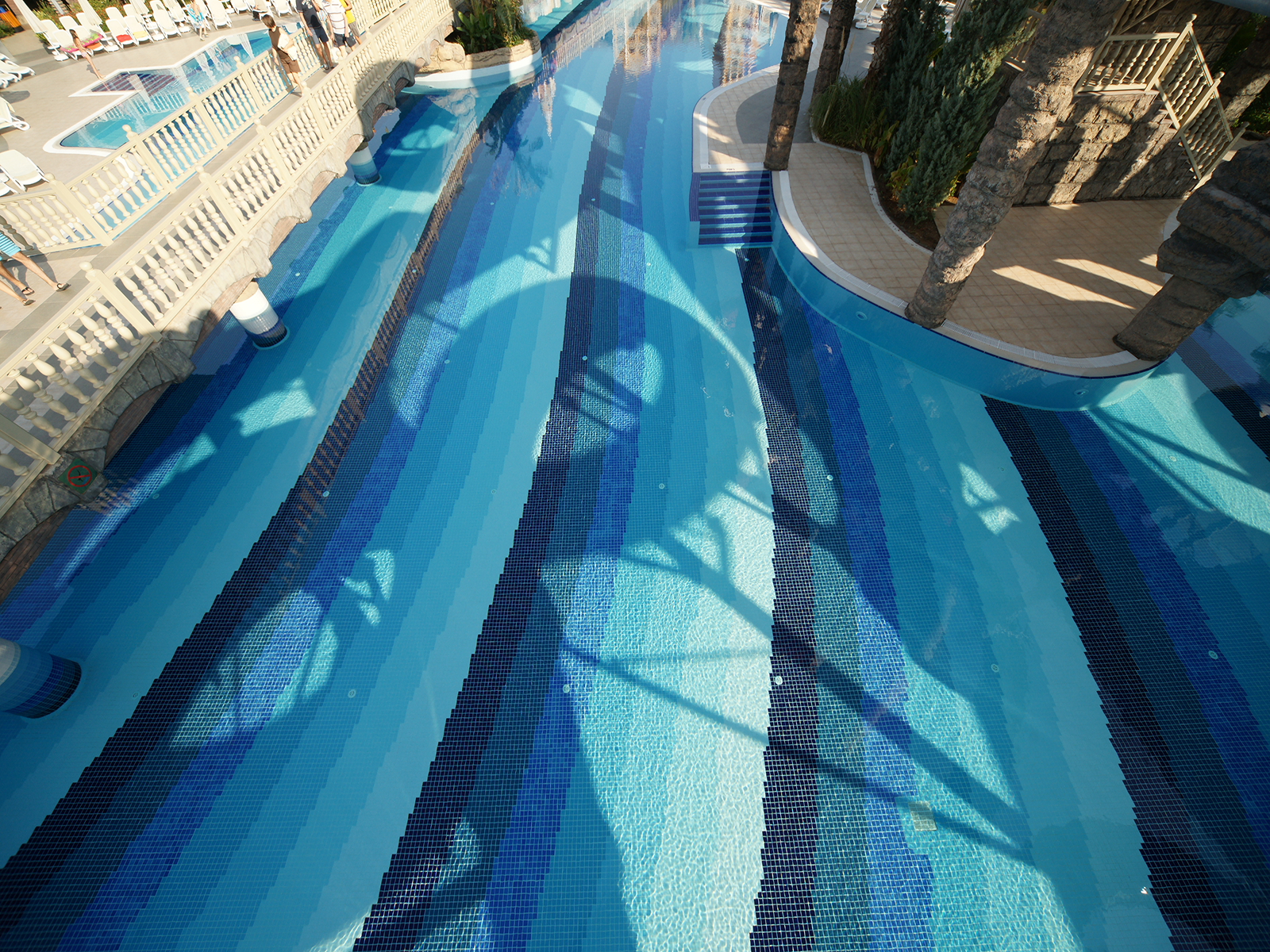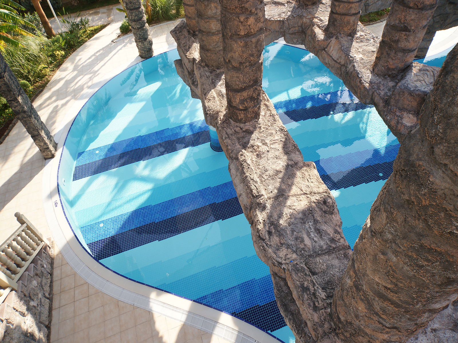 Antalya’da konumlanan Royal Holiday Palace görkemli mimarisini Serapool’un yüksek performanslı porselen ürünleriyle tamamlıyor. Havuz zemininde kullanılan porselen havuz mozaikleri mavi tonlarıyla suya canlılık ve derinlik kazandırıyor. %0,5’in altındaki su emme oranı UV ışınlarına, kimyasallara ve termal şoklara karşı dayanım göstererek uzun ömürlü kullanım sağlıyor. Kaymazlık değeri PTV ≥ 45° olan pötikare kaymaz karo güvenli zemin oluşturuyor. Pötikare havuz tutamak, rakam yazılı tutamak ve pahlı merdiven kaymazı geçiş alanlarında işlevselliği ve bütünlüğü destekliyor. Uygulama otel konuklarına yalnızca yüzme değil konfor, güvenlik ve estetik değerleri bir araya getirerek üst düzey bir yaşam deneyimi sunuyor.