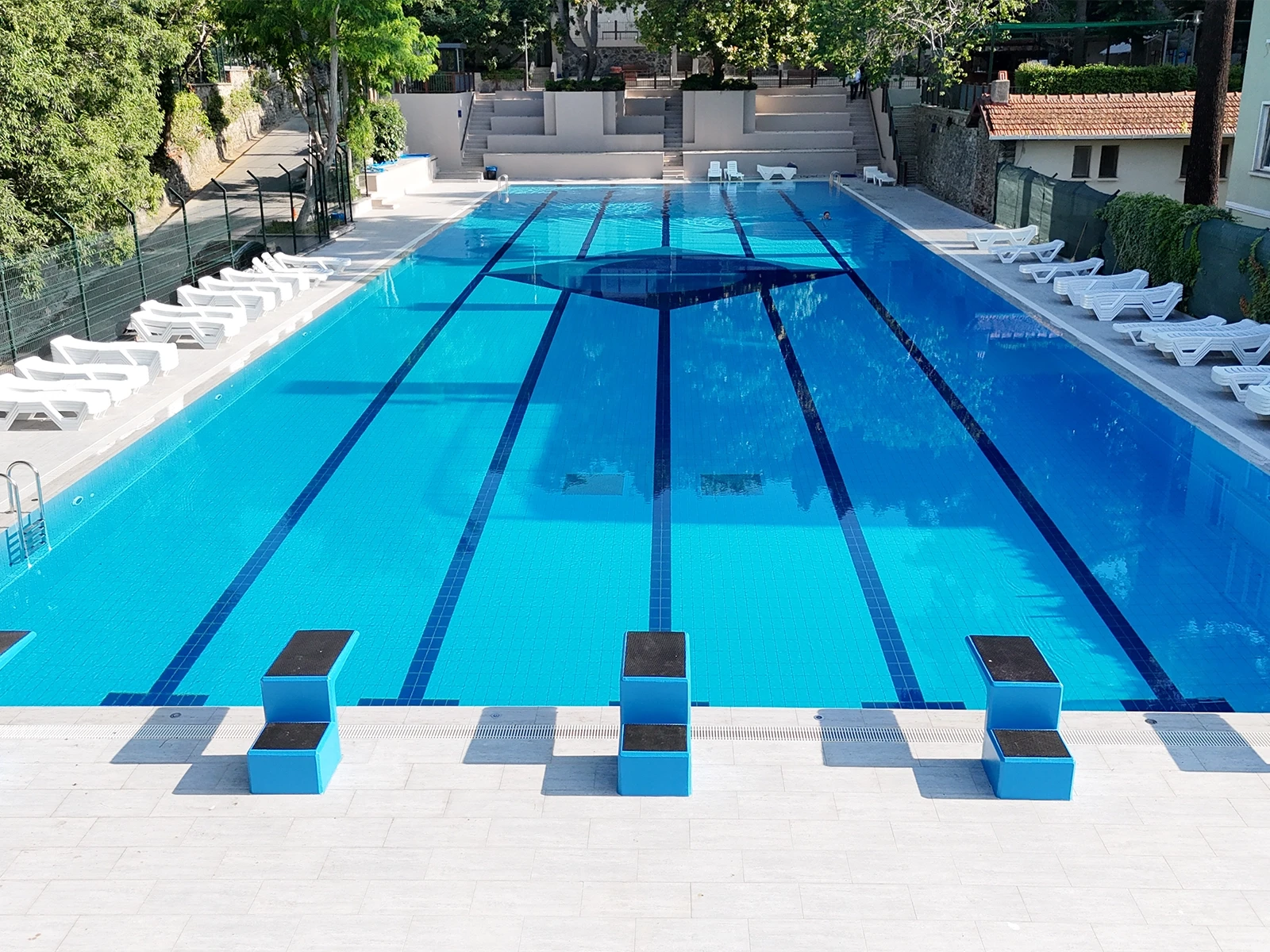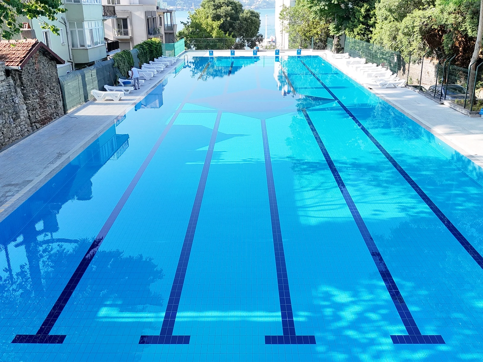 Boğaziçi Üniversitesi Hisar Kampüsü Spor Havuzu Projesinde Olimpik Seri havuz karoları kullanıldı. Olimpik serinin %100 porselen havuz karoları gözeneksiz bir yapıdadır ve su emme oranı %0.5’in altındadır. Aynı zamanda dona dayanıklı olan havuz karoları renk ve dokusuyla kulvar çizgilerinde görsel netlik sağlar. Bu özelliğiyle de uluslararası FINA standartlarını destekler. Boğaziçi Üniversitesi Hisar Kampüsünün yarı olimpik havuzunun çevresinde de Silver Traverten porselen teras kaymazları ve havuz tutamakları kullanıldı. Silver Traverten serisinde bulunan ürünler hem renk hem de dokusuyla havuz çevresinde zarif ve doğal bir bütünlük oluşturdu. Havuzun taşma sisteminde de PVC Profil Izgaralar ile Silver Traverten Flex Izgaralar tercih edildi. Yüksek drenaj kapasitesi ve dayanıklılığıyla dikkat çeken bu ürünlerle havuzun teknik detayları tamamlandı.