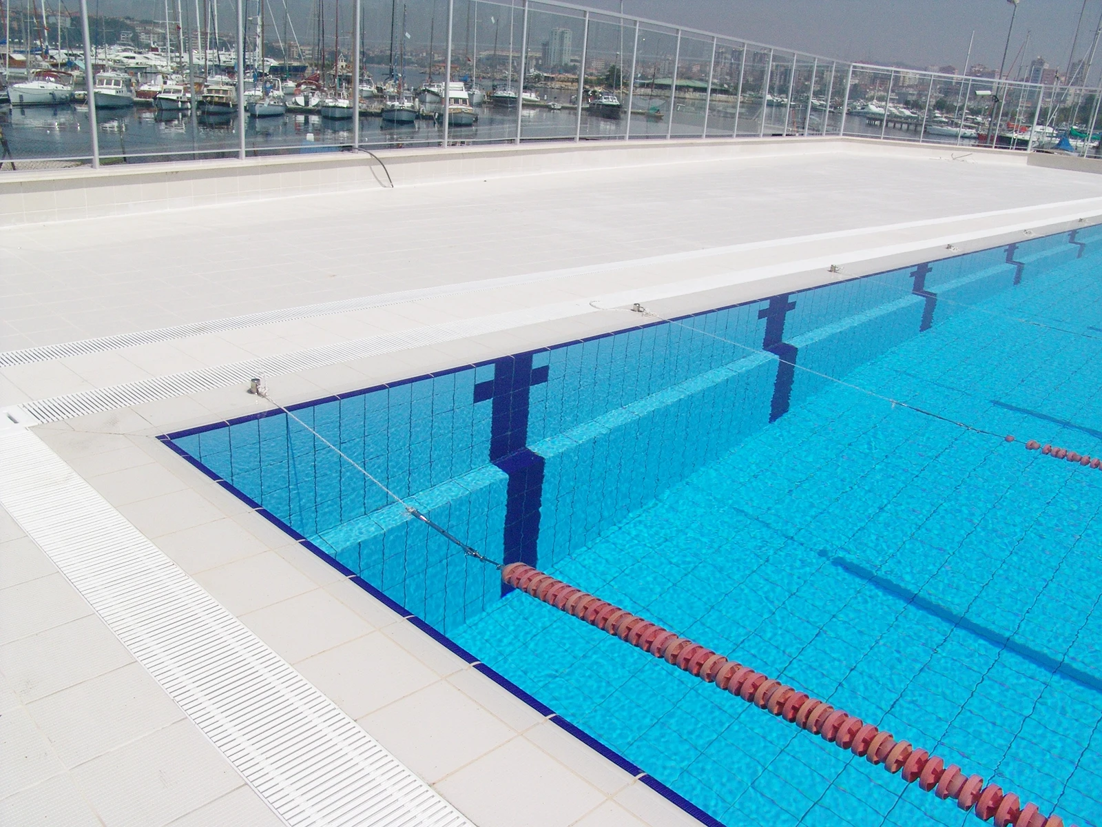 Fenerbahçe Spor Kulübü Olimpik Yüzme Havuzu Projesi denizle iç içe konumuyla sporculara benzersiz bir deneyim sunuyor. Havuzun kaplamasında kullanılan Olimpik Seri porselen havuz karosu gözeneksiz yapısıyla hijyen standartlarını en üst seviyede tutarken yoğun kullanıma dayanıklı yapısıyla uzun ömürlü bir çözüm sağlıyor. Pötikare havuz tutamağı ve pötikare kaymaz karo ıslak alanlarda güvenli hareket imkanı yaratırken minimal derz uygulaması sayesinde havuz içinde ve çevresinde hijyen yaratıyor. Ayrıca pötikare pahlı merdiven kaymazı havuz girişlerinde hem estetik hem de işlevsel bir çözüm oluşturarak güvenliği artırıyor. EN 14411, ISO 10545 ve CE standartlarına uygun olarak üretilen tüm ürünler FINA standartlarına sahip olimpik havuzlarda güvenle kullanılabilecek niteliklere sahip.