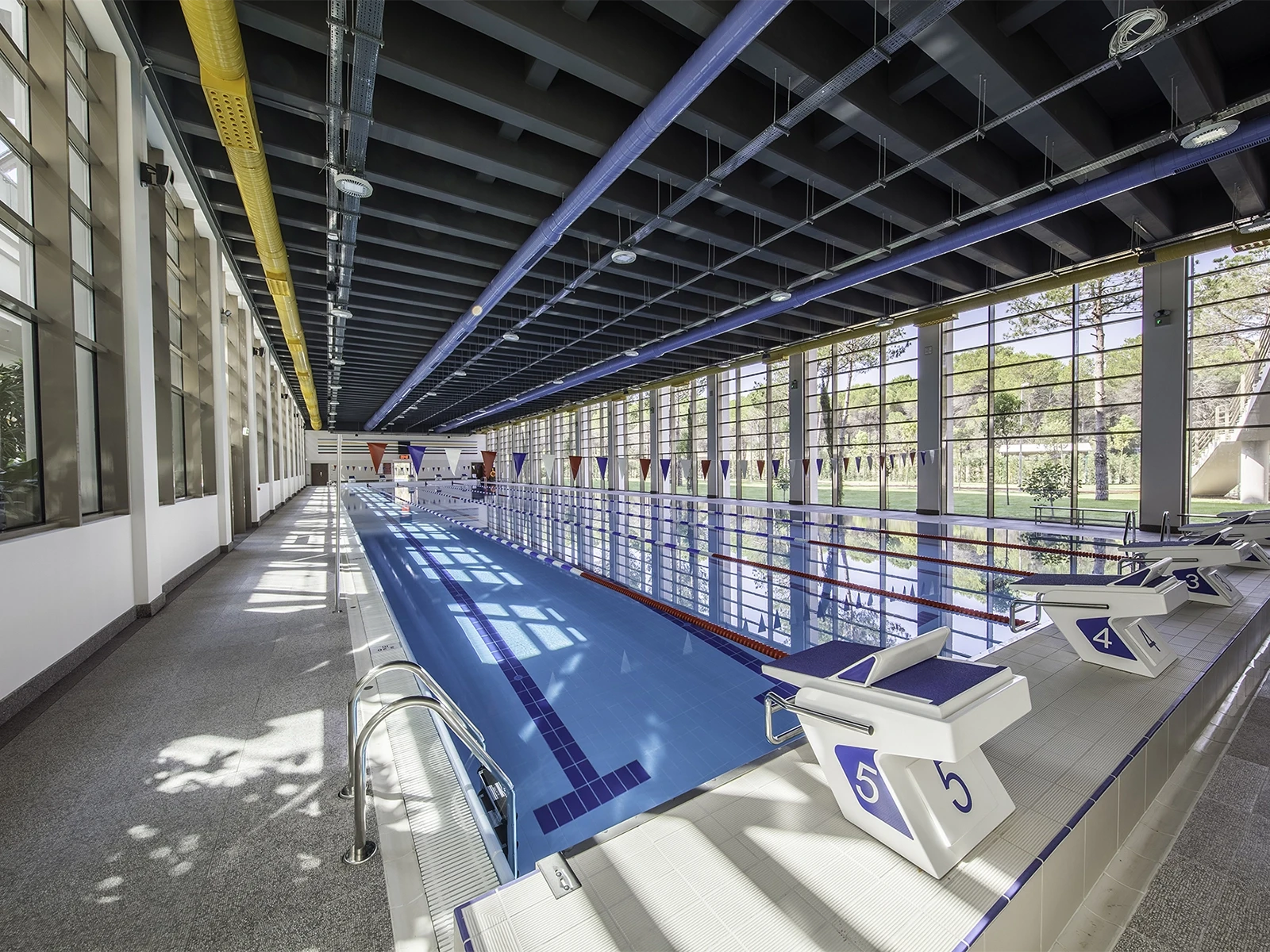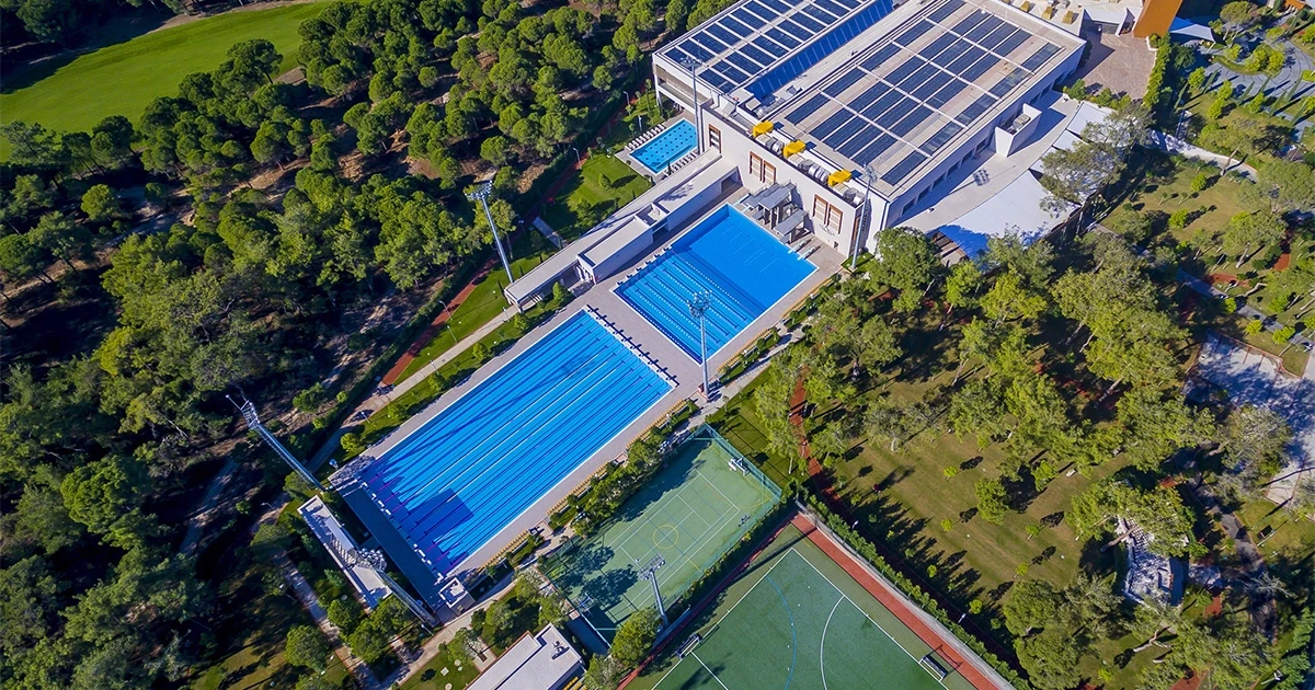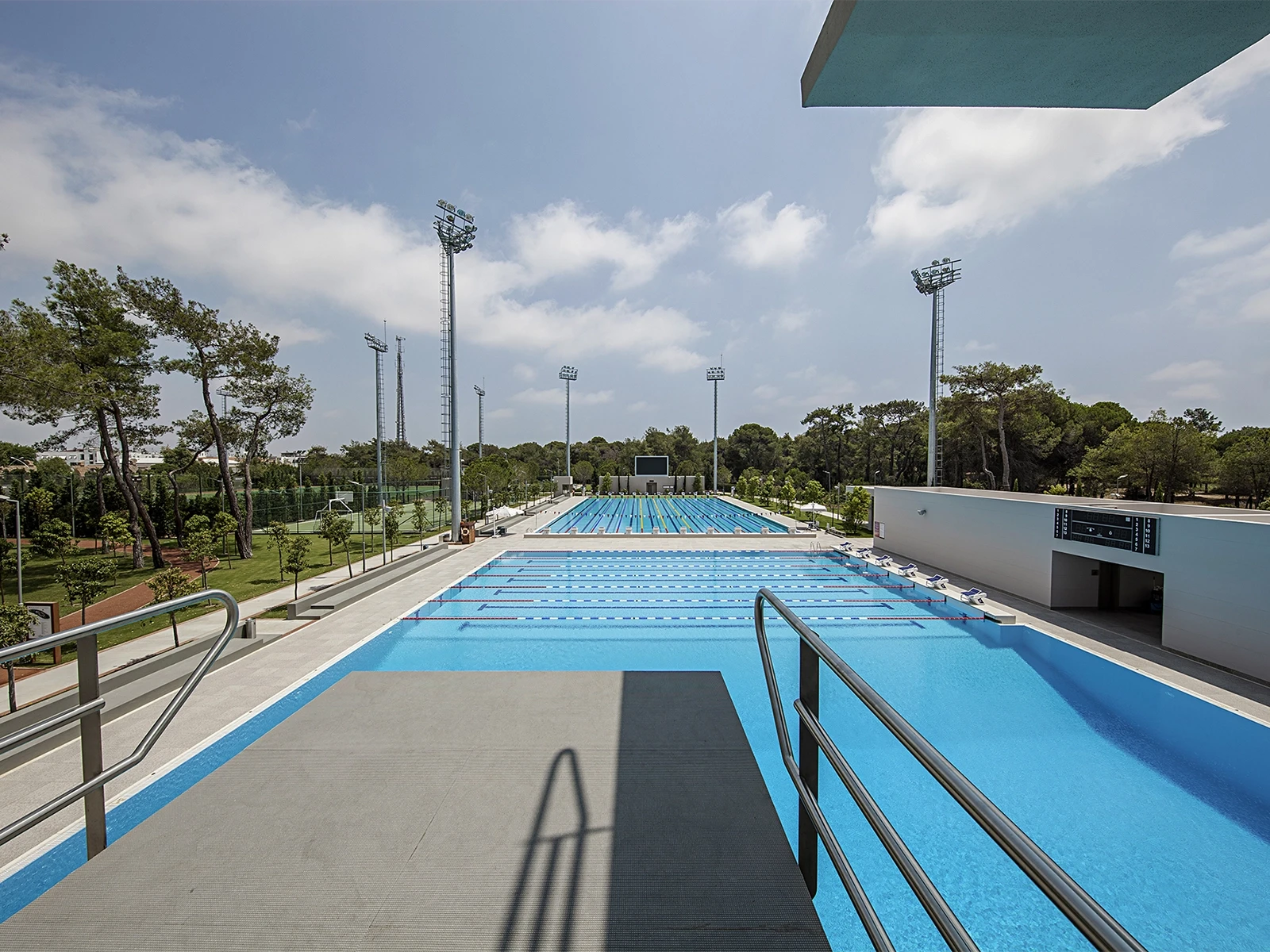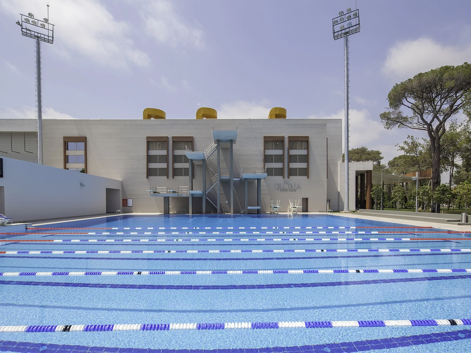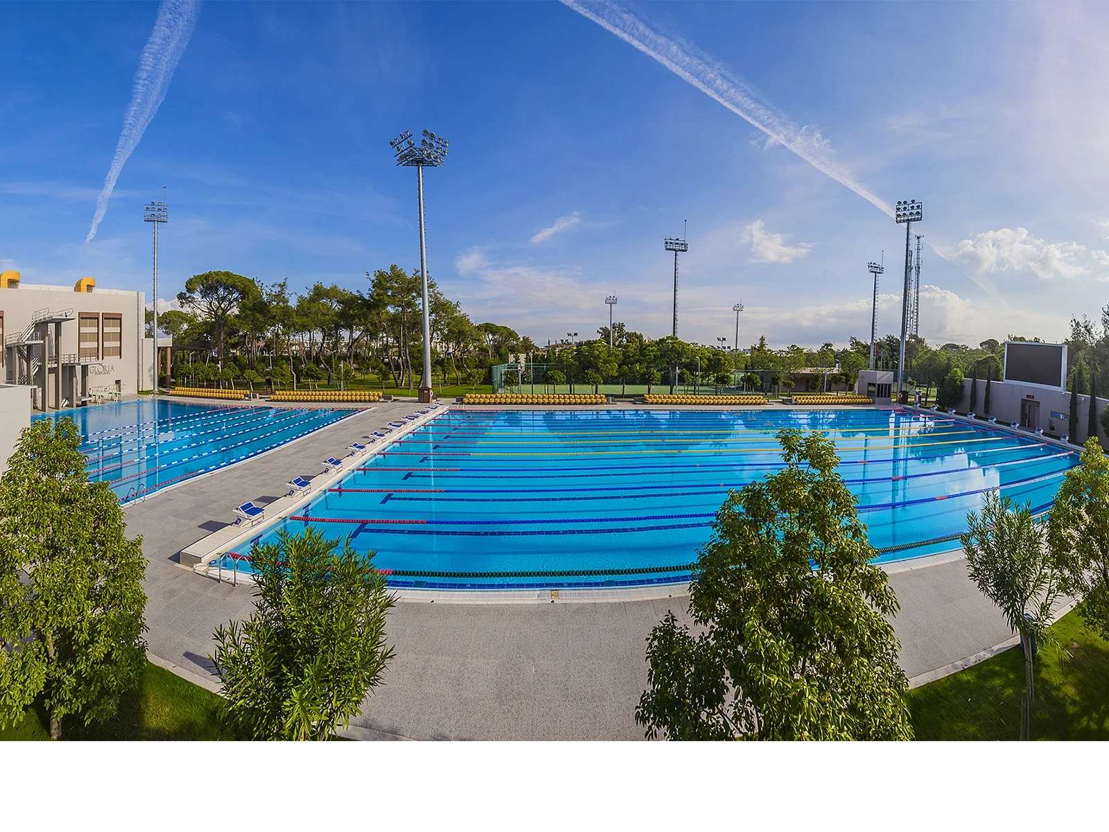 Gloria Sports Arena’da yer alan açık tam olimpik ve kapalı yarı olimpik havuzlarda Serapool’un özel olarak geliştirdiği ürünler tercih edildi. Havuz zeminlerinde kullanılan Olimpik Seri porselen karolar suyun berraklığını öne çıkaran mavi tonlarıyla netlik ve derinlik kazandırırken farklı renk seçenekleri sayesinde şeritler boyunca sporculara yönlendirme işlevi görüyor. Gözeneksiz yapısıyla su emme oranı %0,5’in altında olan karolar dona dayanıklı, hijyenik ve yoğun kullanıma uygun bir yüzey oluşturuyor. Havuz kenarlarında kullanılan 23,5x25 cm ölçülerindeki üstten taşma porselen havuz kanalı ise taşan suyu toplayarak çevrenin kuru ve güvenli kalmasını sağlıyor. %100 porselen yapısıyla suyu emmeden hızlıca akıtan sistem donma, UV ışınları ve şiddetli hava koşullarına karşı yüksek dayanıklılık gösteriyor. Kolay montaj imkanı sunan ve estetik görünümüyle mekana şıklık katan kanal sistemi, havuzda hem hijyen hem de fonksiyonellik sağlıyor.