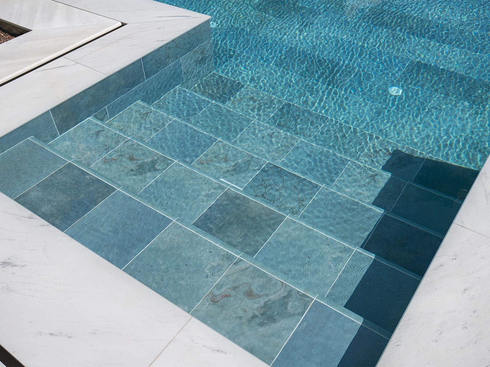 Bodrum’da doğayla iç içe konumlanan villa havuzu projesinde Firuze Mix Serisi tercih edilerek mekâna hem tazelik hem de karakter kazandırıldı. Turkuazın farklı tonlarını bir araya getiren bu özel seri, suyun doğal yansımalarıyla bütünleşerek eşsiz bir görsel derinlik yaratıyor. %100 porselen yapısıyla uzun ömürlü kullanım sunan Firuze Mix Serisi sadece estetik değil aynı zamanda teknik dayanıklılığıyla da öne çıkıyor. Gözeneksiz yapısı sayesinde su emmeyen karolar, don koşullarına karşı yüksek direnç gösteriyor; UV ışınları, kimyasallar ve ani sıcaklık değişimlerinden etkilenmiyor. PTV ≥ 45° kaymazlık değeri ise ıslak zeminlerde güvenli kullanım sağlıyor. Projede kullanılan Firuze Mix Dışbükey ve Dışbükey Köşe parçaları, havuzun kenar detaylarını kusursuz bir şekilde tamamladı. Bu sayede hem estetik bütünlük sağlanırken hem de kullanıcı güvenliği artırıldı.