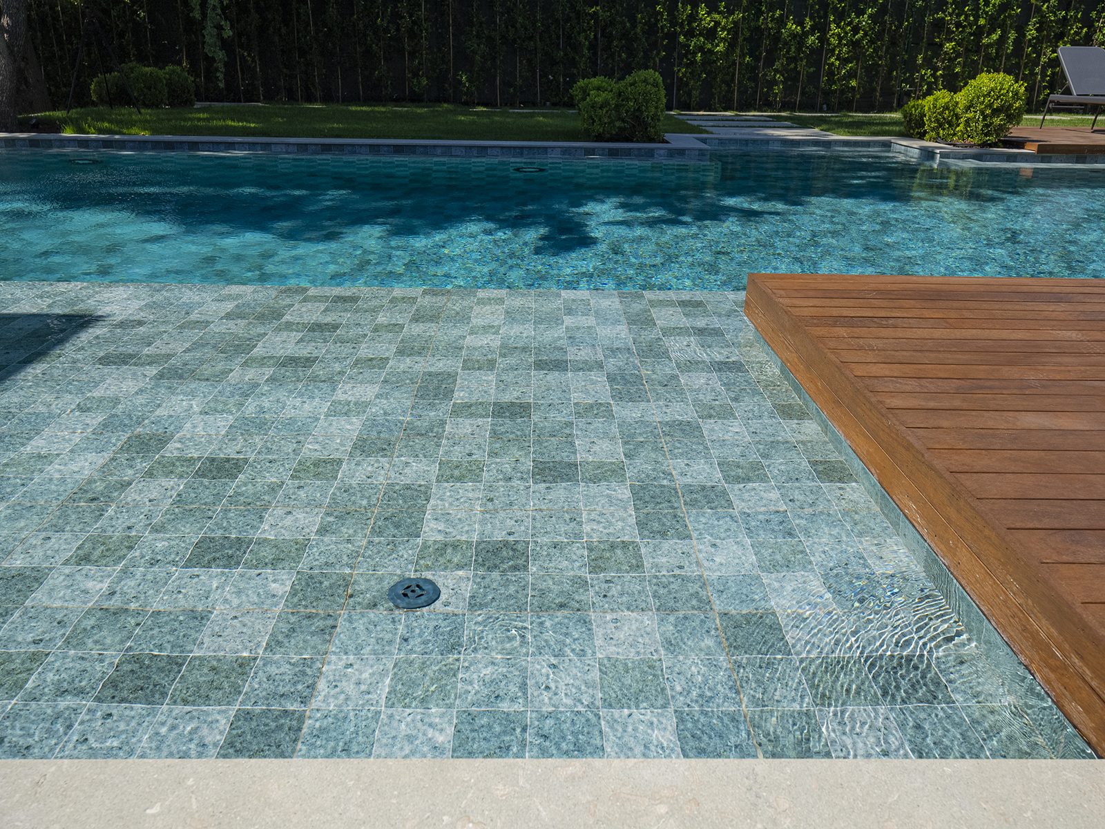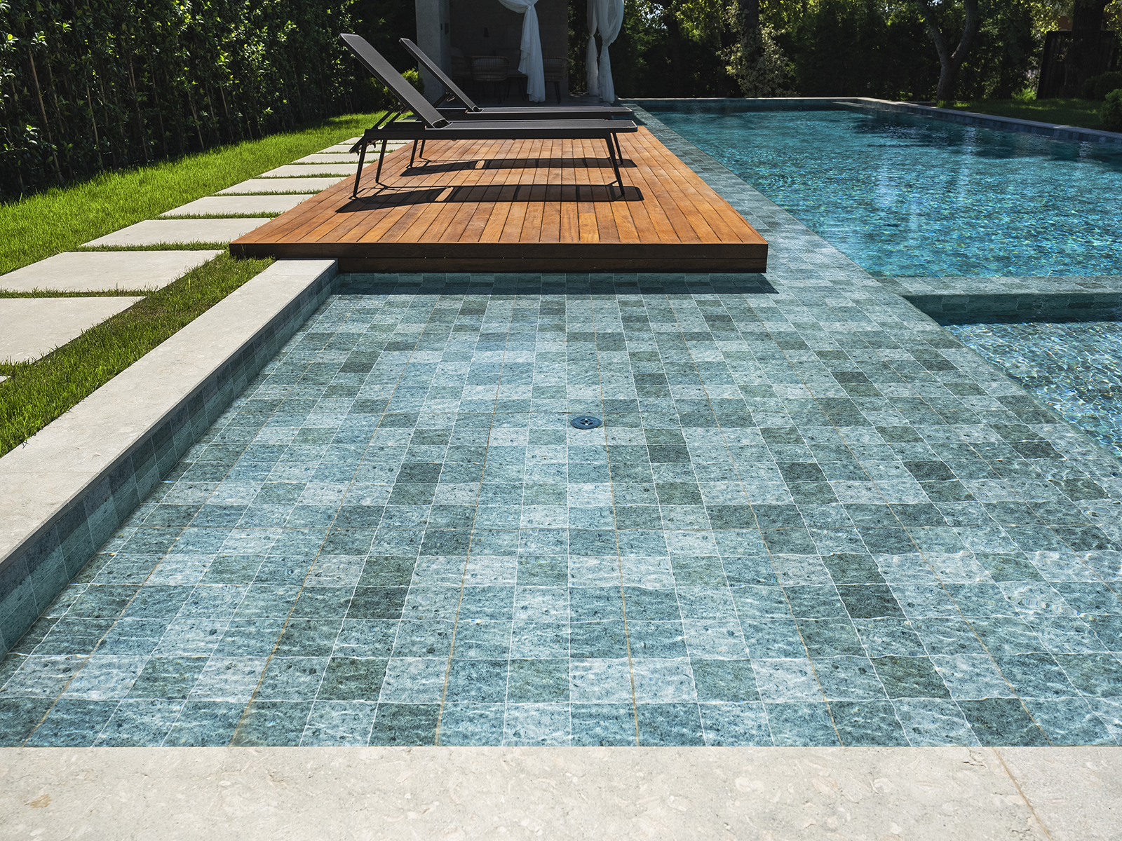 İstanbul’da konumlanan ayrıcalıklı villa projesi, çağdaş mimari tasarımı Serapool’un doğal görünümlü porselen çözümleriyle buluşturuyor. Sukabumi serisi, yeşilin sofistike tonları ve doğal taş hissiyle suya egzotik bir derinlik kazandırıyor. Oluşan atmosfer, doğayla uyumlu, huzur veren bir denge sunuyor. %100 porselen yapısıyla karoların su emme oranı %0,5’in altında kalıyor. UV ışınlarına, kimyasal etkilere ve termal şoklara karşı yüksek dayanım gösteriyor. PTV ≥ 45° kaymazlık değeriyle ıslak zeminlerde maksimum güvenlik sağlanıyor. Sukabumi dışbükey, dışbükey köşe ve dışbükey ayak, geçiş alanlarına hem estetik bütünlük hem fonksiyonel konfor kazandırıyor.