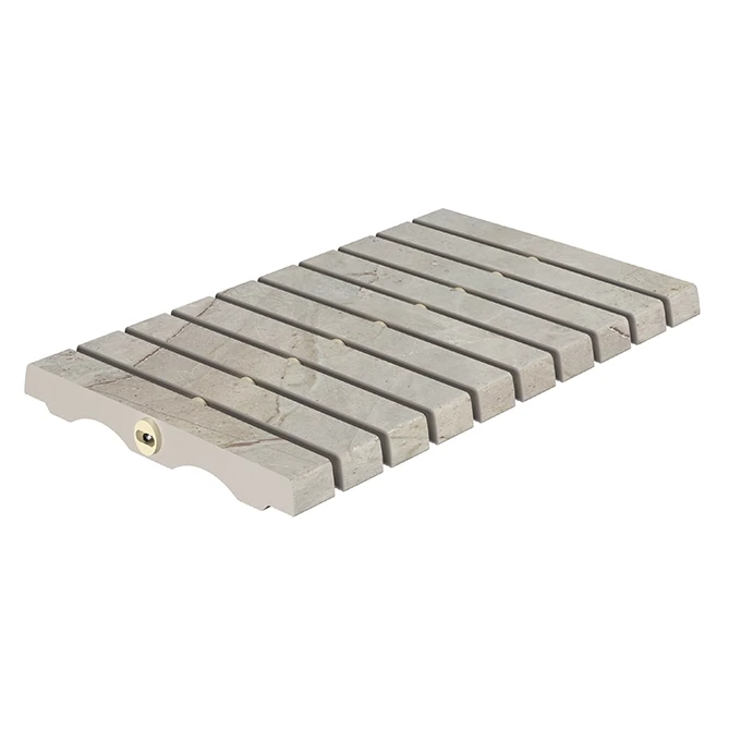 Beige Stone flex ızgara portatif ve esnek yapısıyla farklı formdaki havuz kenarlarına kusursuz uyum sağlayan %100 porselen bir tamamlayıcıdır. Modern projelerde estetik, dayanıklılık ve hijyenik kullanım imkanı sunar.