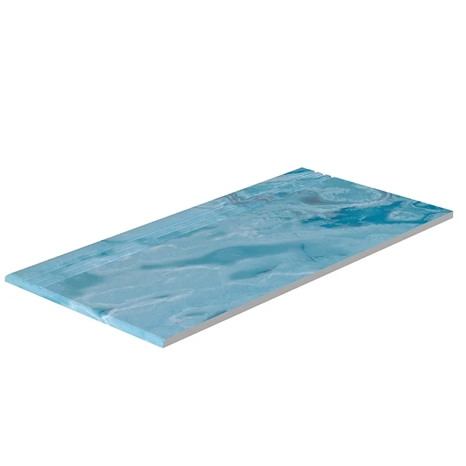 Blue Bead merdiven kaymazı sağ bitiş parçası, havuz merdivenlerinde estetik ve güvenliği bir araya getiren, mavi tonlara sahip özel bir porselen üründür. Canlı rengiyle dikkat çekerken, yüksek performanslı yapısıyla güvenli kullanım sağlar.