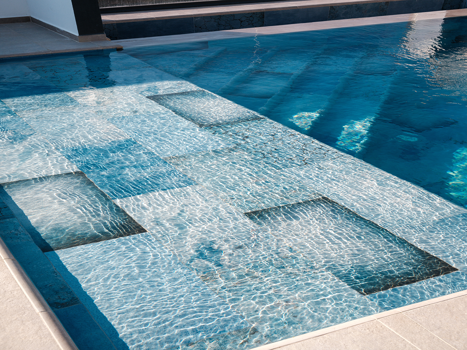Blue Bead Serisi havuz karosu mavi tonların en enerjik ve modern hâlini yüzeylere taşıyan, mimari projelere hareket ve derinlik katan özel bir koleksiyondur. Desenlerindeki ritmik geçişler suyla birleştiğinde havuza etkileyici bir karakter kazandırır. %100 porselen yapısı sayesinde hem teknik performansı hem de estetik uyumu üst düzeyde sunar. Dokulu ve kaymaz yüzeyiyle kullanım konforu kadar güvenliği de gözeten seri çağdaş çizgilere sahip projeler için rafine bir seçimdir.