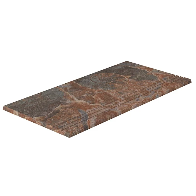 Fossil Mix merdiven kaymazı sol bitiş parçası, doğanın renk geçişlerini yansıtan yüzeyiyle havuz merdivenlerine zarif ve uyumlu bir görünüm kazandırır. Kaymaz dokusu ve dayanıklı porselen yapısıyla güvenlikten ödün vermeden estetik bir çözüm sunar.