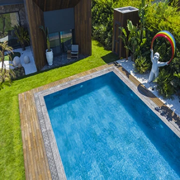 Marin Serisi %100 porselen havuz karosu, Akdeniz stilinde tasarlanmış projeler için özel olarak geliştirilmiştir. Mavinin dingin tonlarını zarif geçişlerle yansıtan bu seri, hem estetik hem de teknik açıdan üst düzey performans sunar. Dokulu ve kaymaz yüzeyiyle güvenli kullanım sağlarken, sade çizgileri sayesinde modern ve klasik mimarilerle uyum içinde çalışır. Özel konut ve ticari projeler için ideal bir tercihtir.