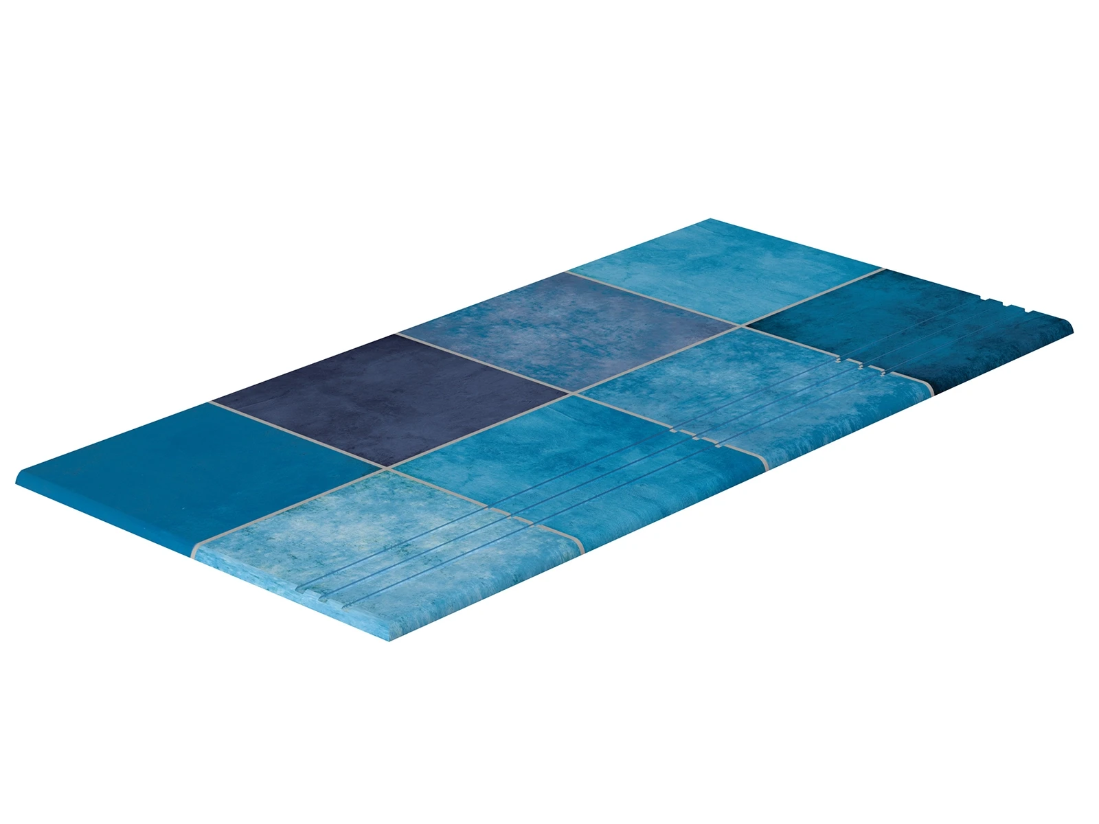 Piazza Cobalt merdiven kaymazı sol bitiş parçası, enerjik kobalt mavisiyle havuz merdivenlerine görsel canlılık kazandırırken, yüksek kaymazlık değeriyle güvenli kullanım sunar. %100 porselen yapısı ile dış koşullara karşı uzun ömürlü performans sağlar.