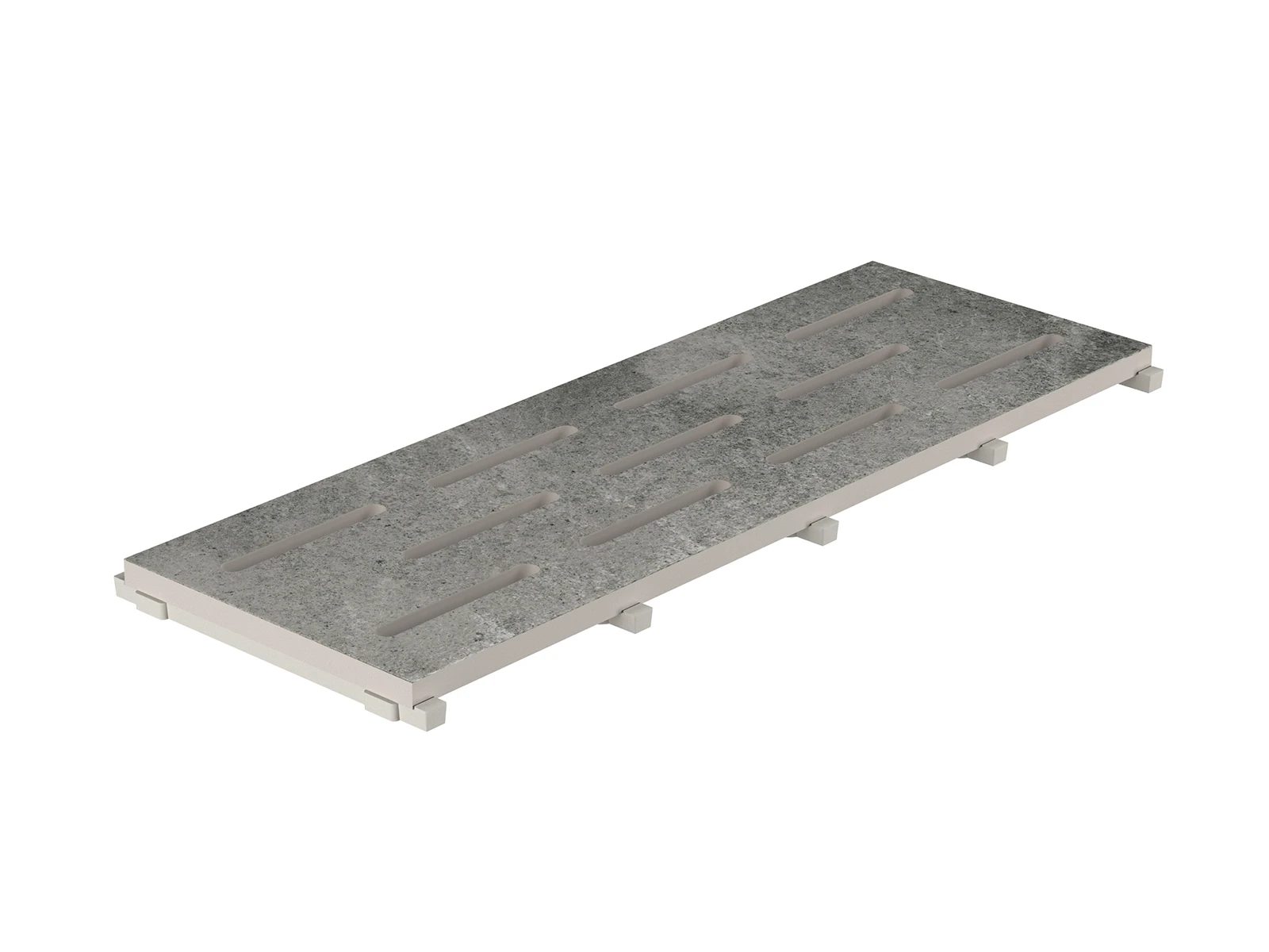 Pool Garden Grey Monoblok Izgara, modern gri tonları ve dayanıklı porselen yapısıyla havuz kenarlarında şıklık ve güvenliği bir arada sunar. Özel ABS plastik destekli alt yapısı sayesinde kırılma ve deformasyona karşı yüksek dayanıklılık sağlar. Mat ve dokulu yüzeyi kaymayı önler, 45 PTV kaymazlık değeri ile ıslak zeminlerde güvenli yürüyüş imkanı verir. Gözeneksiz yüzeyi leke tutmaz, bakteri oluşumunu engeller ve hijyenik bir ortam yaratır. UV ışınlarına karşı dirençlidir, uzun süre renk ve dokusunu korur.