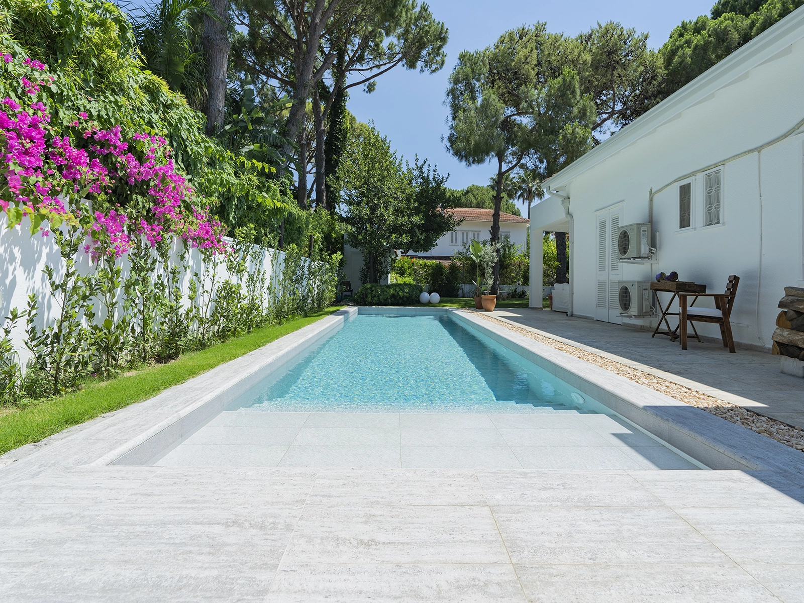 Silver Traverten Serisi, hem görsel bütünlüğü hem de teknik dayanıklılığıyla öne çıkan, klasik-modern sentezli havuz tasarımlarına özel olarak geliştirilmiştir. Doğal traverten taşının zamansız dokusunu yansıtan bu havuz karosu, %100 porselen malzeme ile üretilmiş olup dayanıklılığı estetikle buluşturur. Yumuşak gri tonlardaki zarif geçişleri ve dokulu yüzeyiyle Silver Traverten Serisi, sade şıklığı ön plana çıkaran tüm projeler için kusursuz bir tercihtir.
