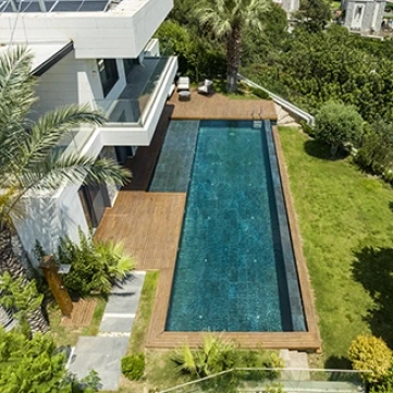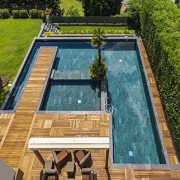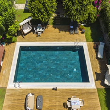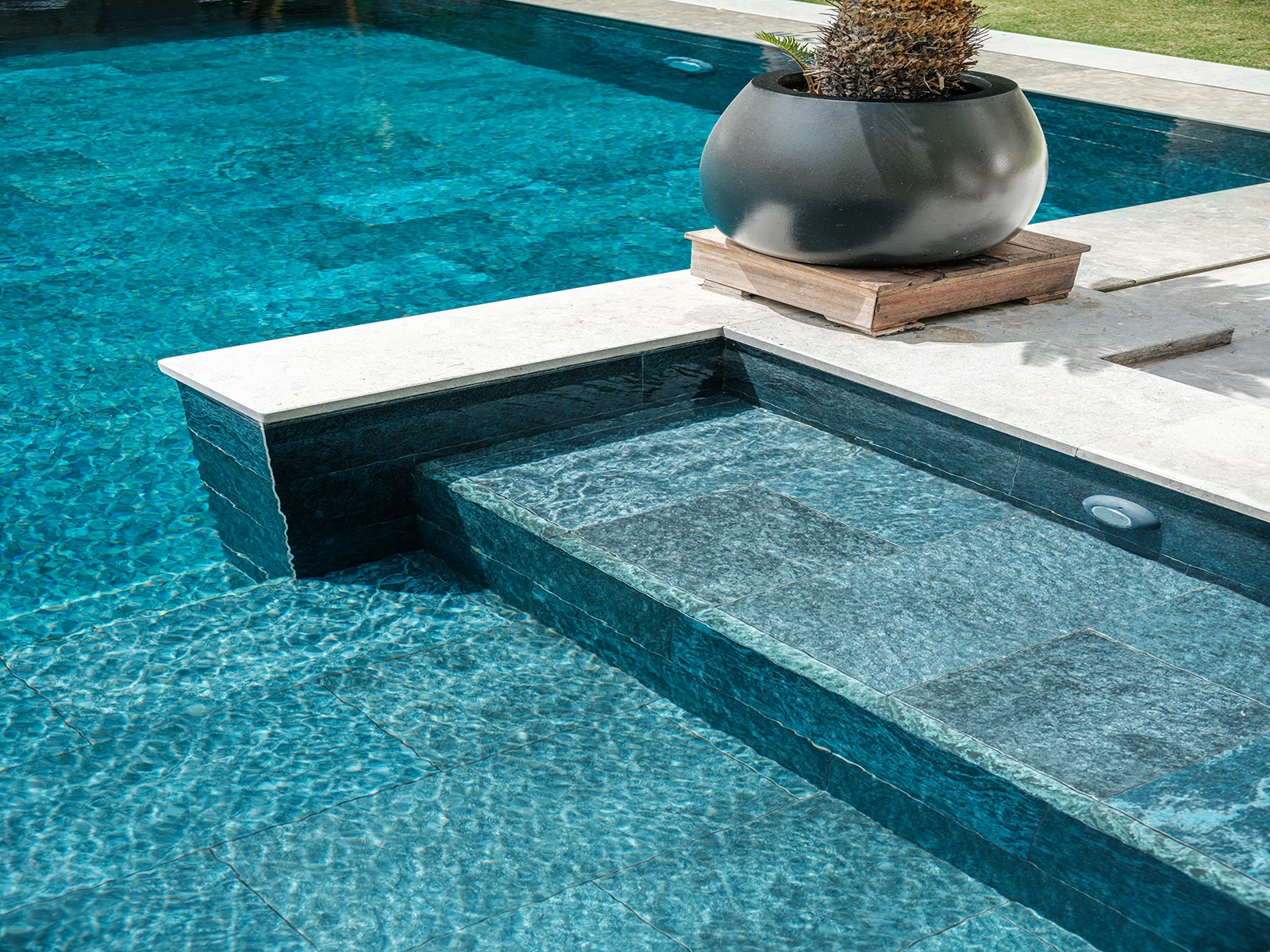 %100 porselen malzemeden üretilen Verde Guatemala havuz karosu serisi hem görsel bütünlüğü hem de teknik dayanıklılığıyla öne çıkan zamansız ve sofistike havuz tasarımları için özel olarak geliştirilmiştir. Doğal yeşilin büyüsünü taşıyan seri doğayla uyumlu estetiği ve yüksek performansı bir araya getirir. Sade çizgileri, yeşilin derin tonlarında zarif geçişleri ve kaymaz yüzeyiyle özel konut projelerinden otellere, SPA merkezlerinden sosyal yaşam alanlarına kadar farklı ölçeklerdeki projeler için ideal bir tercihtir.