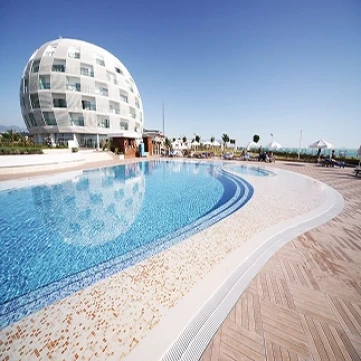 Porselen mozaikler Serapool’un özgün üretim yaklaşımıyla hazırlanan %100 porselen havuz kaplama malzemeleri arasında yer alır. Minimalist formu hem klasik hem de modern çizgilere sahip havuz projelerinde rafine bir görünüm yaratır. Klasik havuz cam mozaik ya da seramik mozaik seçeneklerine göre daha yüksek yapısal mukavemet sunan porselen mozaik yoğun kullanıma sahip havuz alanlarında uzun süreli performans sunar.