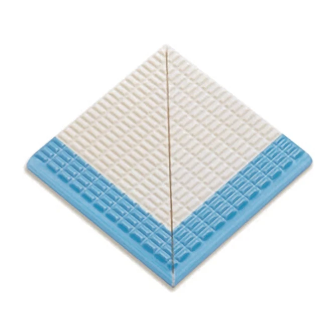 Pötikare Pahlı Dış Köşe Açık Mavi Merdiven Kaymazı, havuz alanlarında dış köşe merdiven geçişlerinin güvenliğini ve konforunu artırmak için özel olarak tasarlanmış %100 porselen bir üründür. Açık mavi tonu ile havuz ortamına modern bir dokunuş katar; pahlı formu ise köşe geçişlerinde rahat ve yumuşak adım imkânı sunar. Geometrik pötikare yüzey dokusu ile estetik ve fonksiyonel bir çözüm sağlar.
